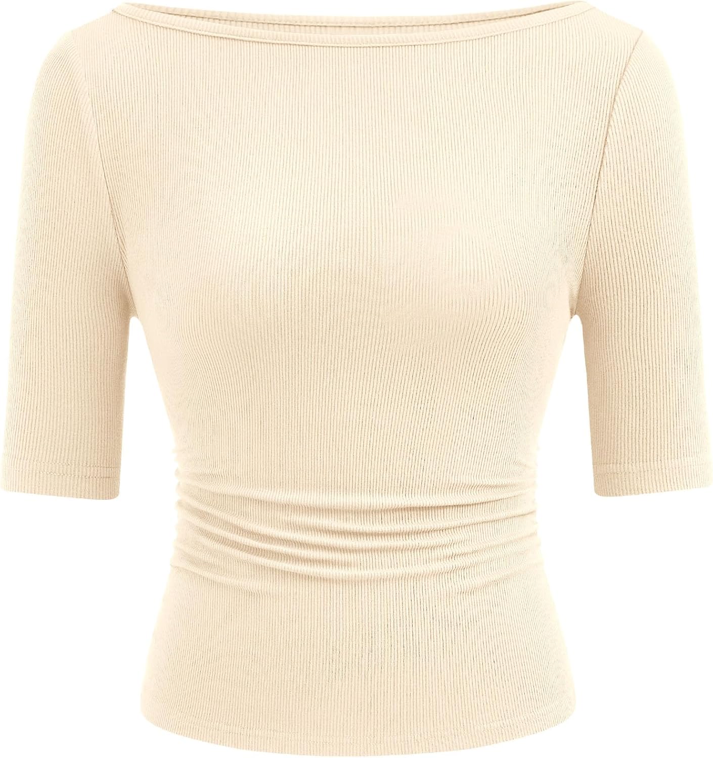 PRETTYGARDEN Womens Boat Neck Tops Knit Ribbed Plain T Shirts