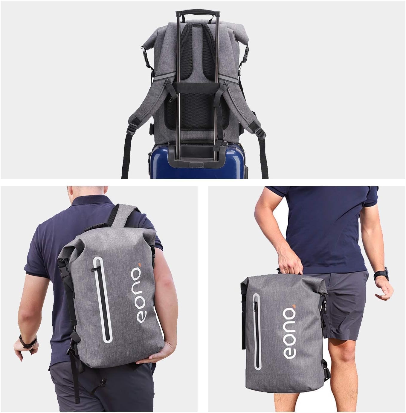 Ergonomic design with comfortable, adjustable padding on the shoulder strap and a breathable mesh back for heat dissipation; the back also features an elastic strap for hanging on luggage handles