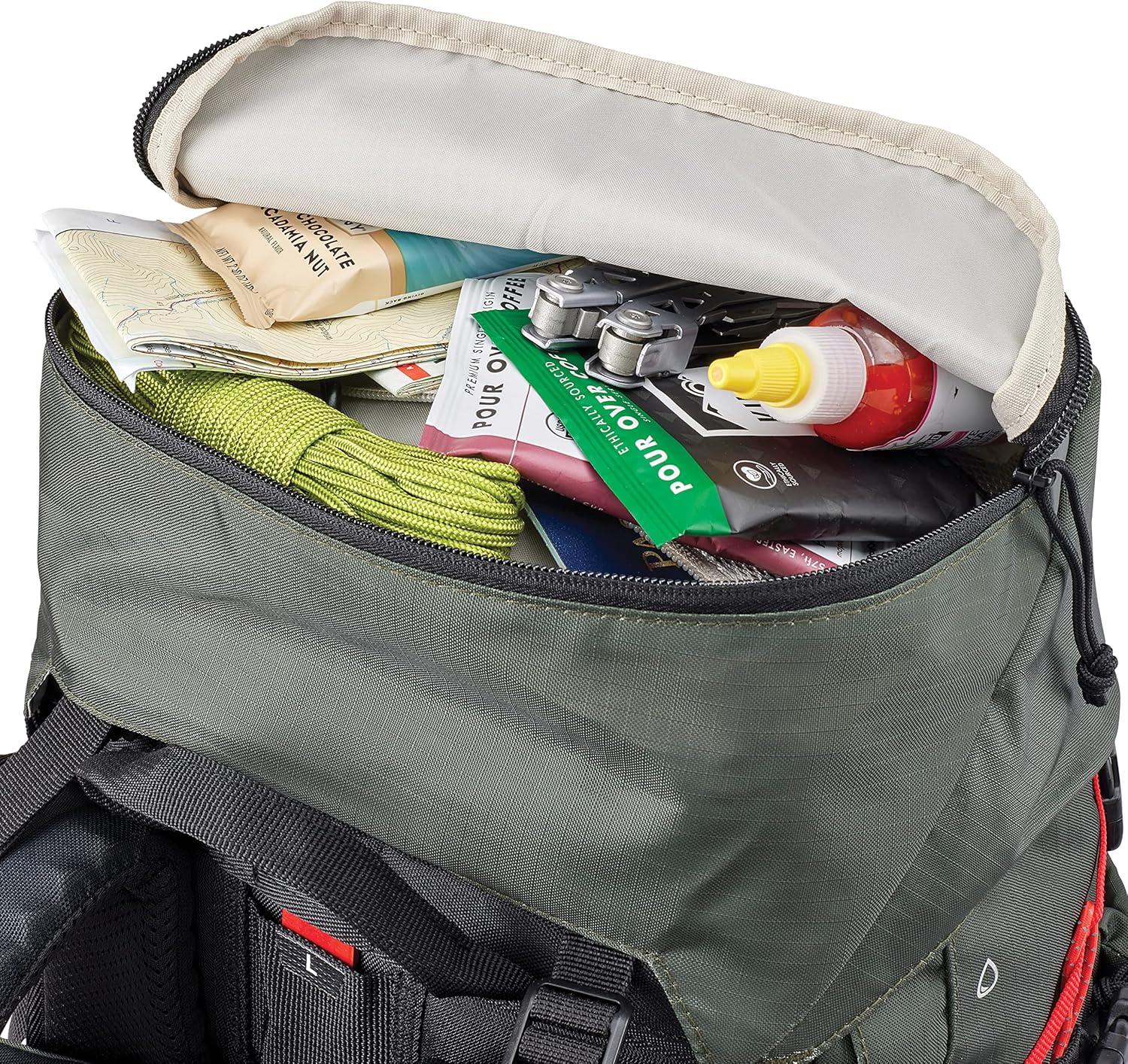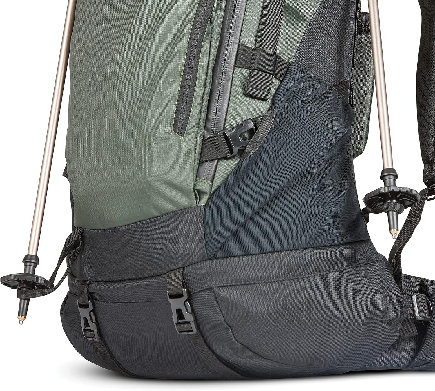 Multiple, quick-access, exterior pockets. Internal hydration pocket with hose pass-through. Easy access trekking pole storage. Three access points to main compartment (top, side, bottom). Number of Exterior Pockets: 7.