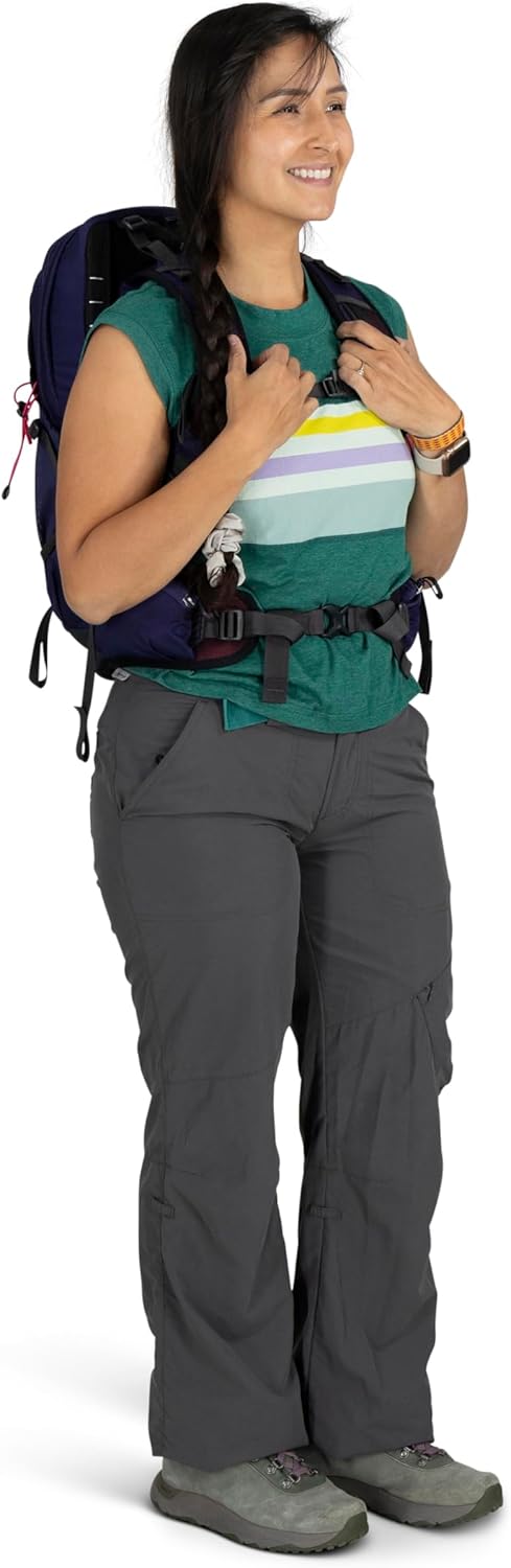 PRECISE & BREATHABLE FIT: Stay cool and supported with an AirScape backpanel that delivers a close-to-body, stable carry and improves airflow to reduce sweat while hiking or cycling. The adjustable sliding yoke and BioStretch hipbelt create a personalized women’s fit, keeping the bag stable and comfortable during hikes, bikes, day trips, and other adventures.