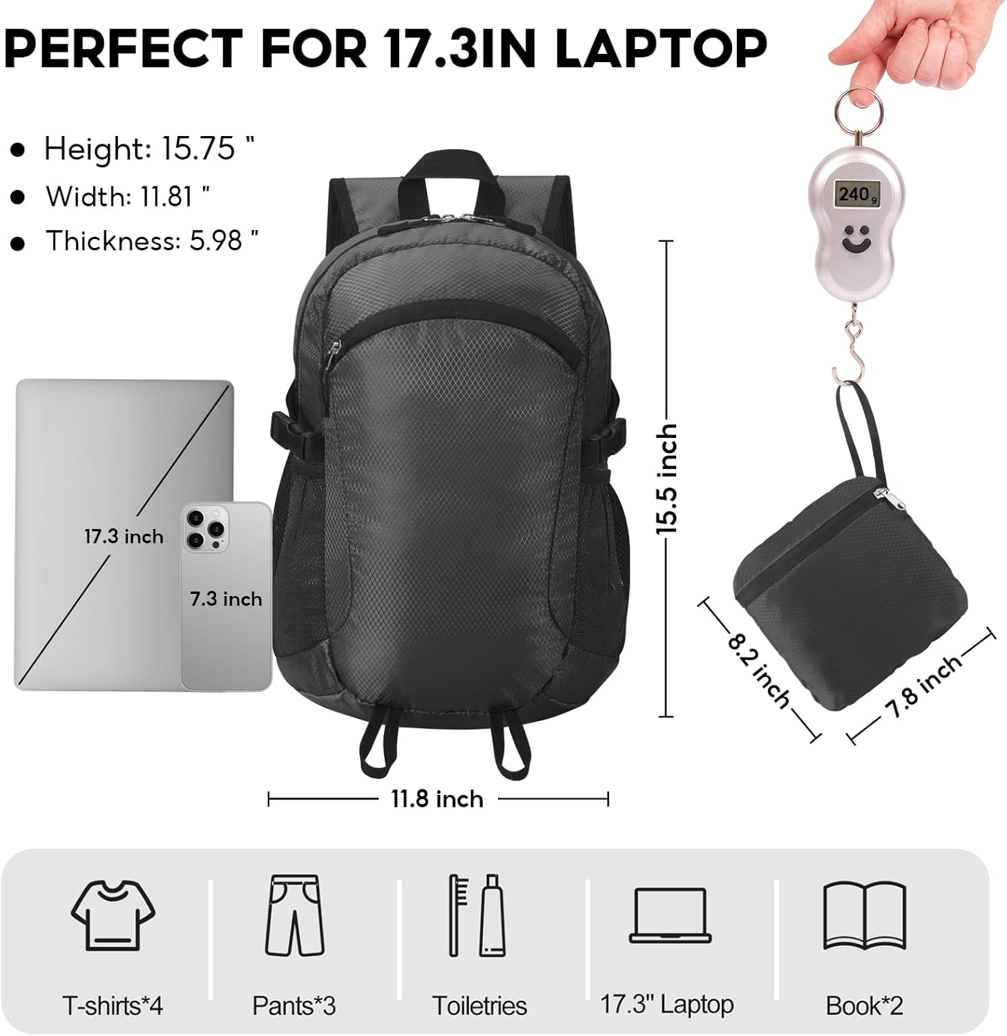 Lightweight: The lightweight packable backpack is about half the weight of a mobile phone, being folded into its inner pocket for storage and easy to open when needed. Unfolded size: 15.3x 5.5 x 11.4 inches, folded size is only 6.6 x 6.6 x2.8 inches