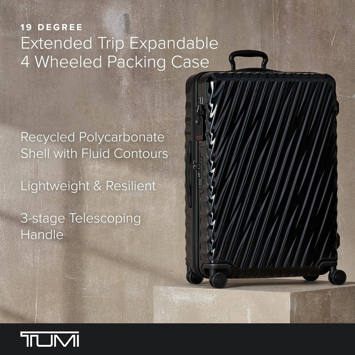 Elegant, Effortless Travel Accessories: The TUMI 19 Degree Extended Trip Expandable 4 Wheeled Packing Case is a lightweight, resilient case for longer trips or group packing