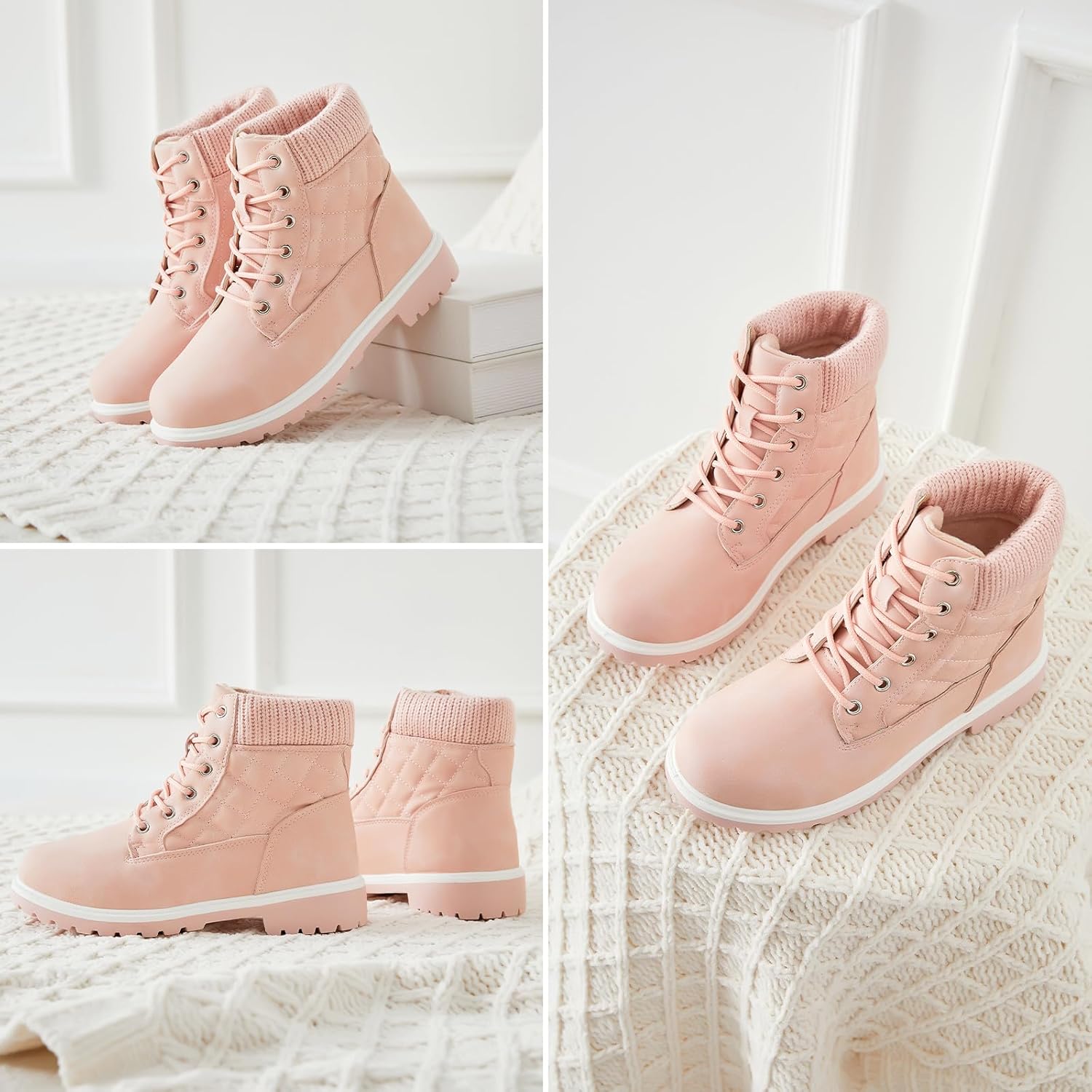 Warm&Comfortable knitted collar and plush interiorEasy-to-clean water repellent leather upperThese combat boots have a non-slip rubber sole for traction, safety, and durability