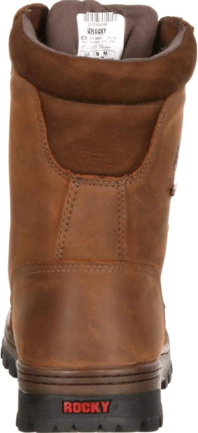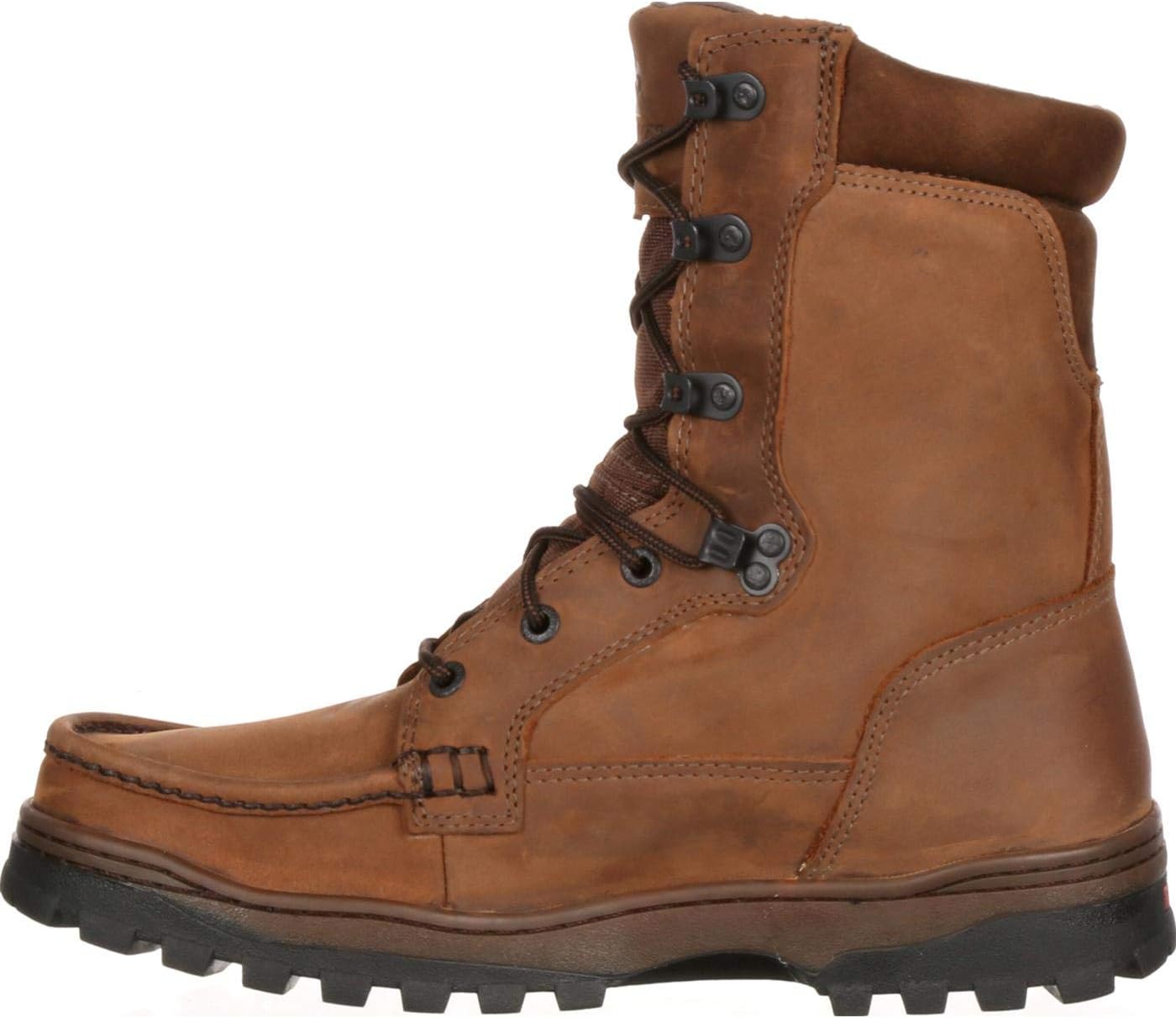 This Rocky outback’s upper was assembled with premium full-grain leather; while it is certainly very soft, the material has great durability and strength. Having a lace-up design on this outdoor boot is fantastic, because it allows you to adjust the fit. This boot has a fully padded collar and tongue to help keep out debris. After all, no one wants to walk around with rocks and dirt rolling around in their boots while they are trying to enjoy their experience outdoors. Gore-tex fabric has been added into the design of this footwear having it ensures that these outdoor boots will remain durably waterproof, breathable and windproof. To enhance your level of comfort within these #8729 boots, a Rocky air-port footbed has been inserted. This polyurethane insert helps cushion your steps and aids in absorbing shock. Are you hesitant about the boot’s grip don’t be… the outback rubber outsole provides fantastic traction and allows your footing to be steady when you’re walking on rugged terrain. Whether you’re headed for the hills or going to work, this rugged and good-looking Rocky outback gore-tex outdoor boot (#8729) with moc-toe styling will keep you dry and comfortable.