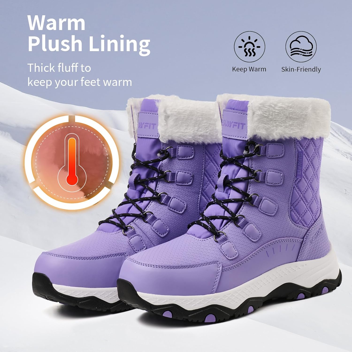Suiyfit Snow Boots for Women Waterproof Mid-Calf Booties Winter Hiking Boot Durable Warm Fur Lined Boot Non-Slip Warm Climbing Shoes Walking, Cold Weather