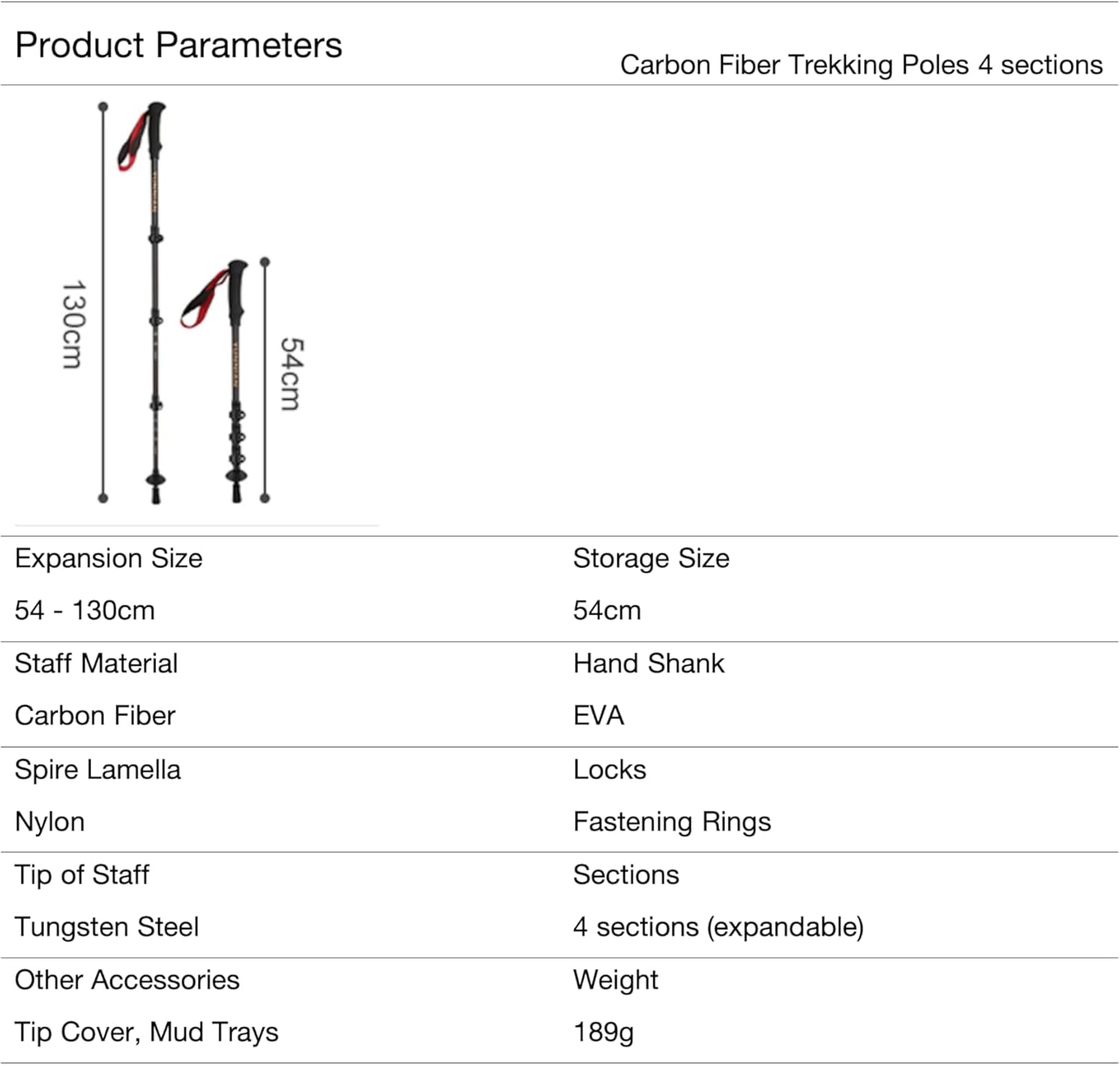100% Carbon Fiber Staff make this trekking pole Ultra light. The body of the hiking stick made of aviation materials is lightweight, sturdy, and wear-resistant.The total weight of the hiking stick is 189 grams, making it lightweight, effortless, and stress relieving.