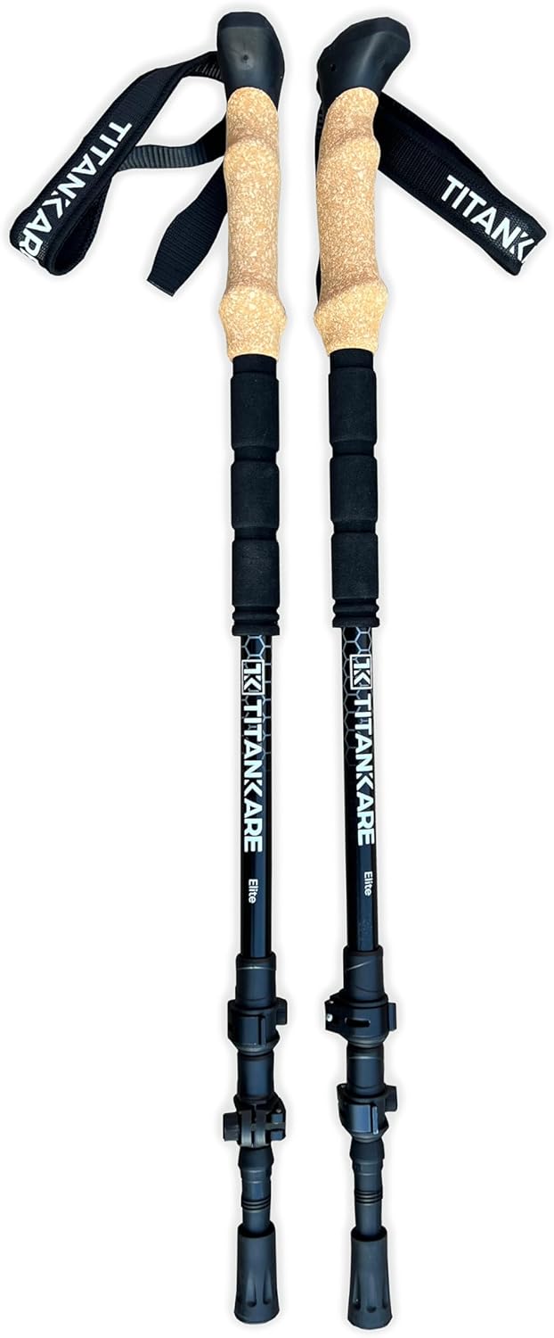 TITANKARE Elite Trekking Poles are built for hikers, backpackers, and adventurers seeking lightweight durability and stability on rugged trails. These adjustable trekking poles help reduce strain on knees and joints, improving balance and endurance.