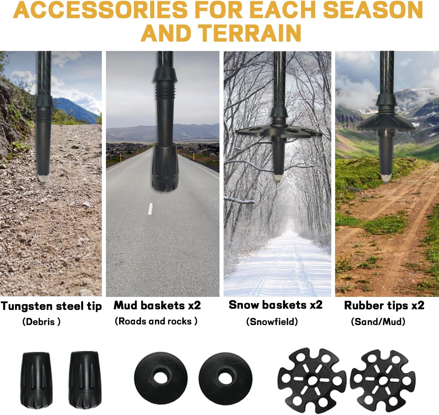 Tungsten steel alloy tip: Super wear-resistant grip, with anti-mud resistance design, safer to deal walking sticks for hiking with complex terrain such as gravel and mud.