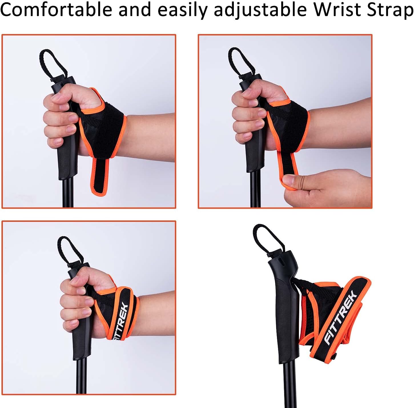 ✅COMFORTABLE – FitTrek trekking poles have been designed with Anti-Slip Natural Cork Grips + Soft-foam Grip, keep Hands Cool and Dry During Long Distance Hikes. The specially designed wristband can change the direction of hand force. Instead of grasping the handle, using the wrist strap to support and push the pole is also a unique design to reduce hand vibration.