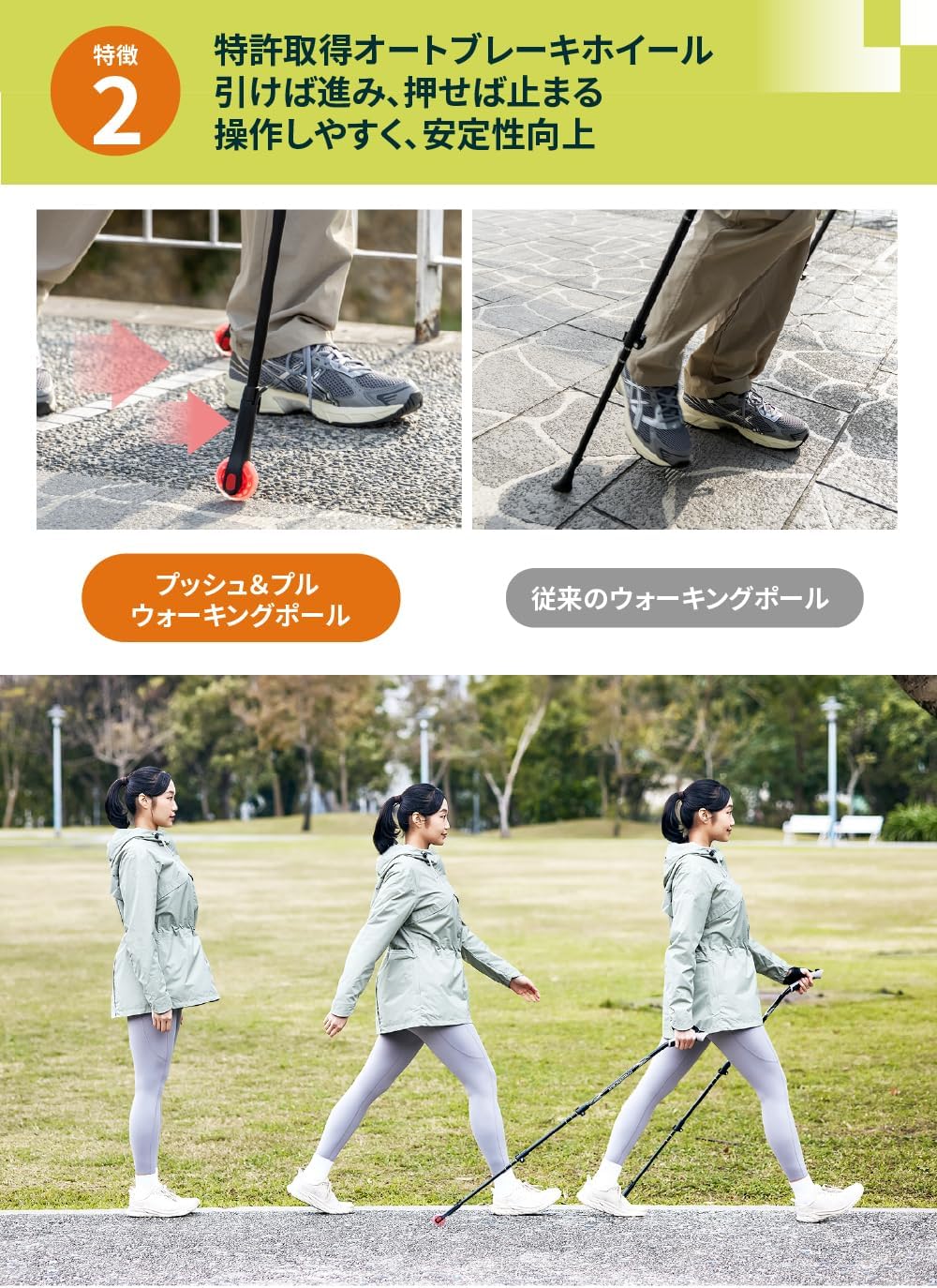 Coach-Approved Training Tool – Exclusive AutoBrake Wheel reveals arm pushing power and posture instantly, helping you correct technique in real time for more effective Nordic walking training.