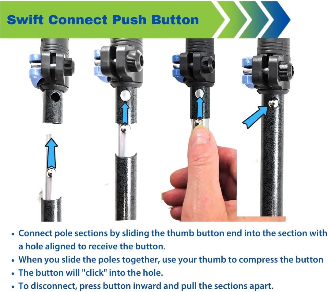 PREMIUM MATERIALS: Our poles are made from high grade aluminum and feature our exclusive Swift Connect push button mechanism that allows for fast and intuitive attachment and detachment of sections.