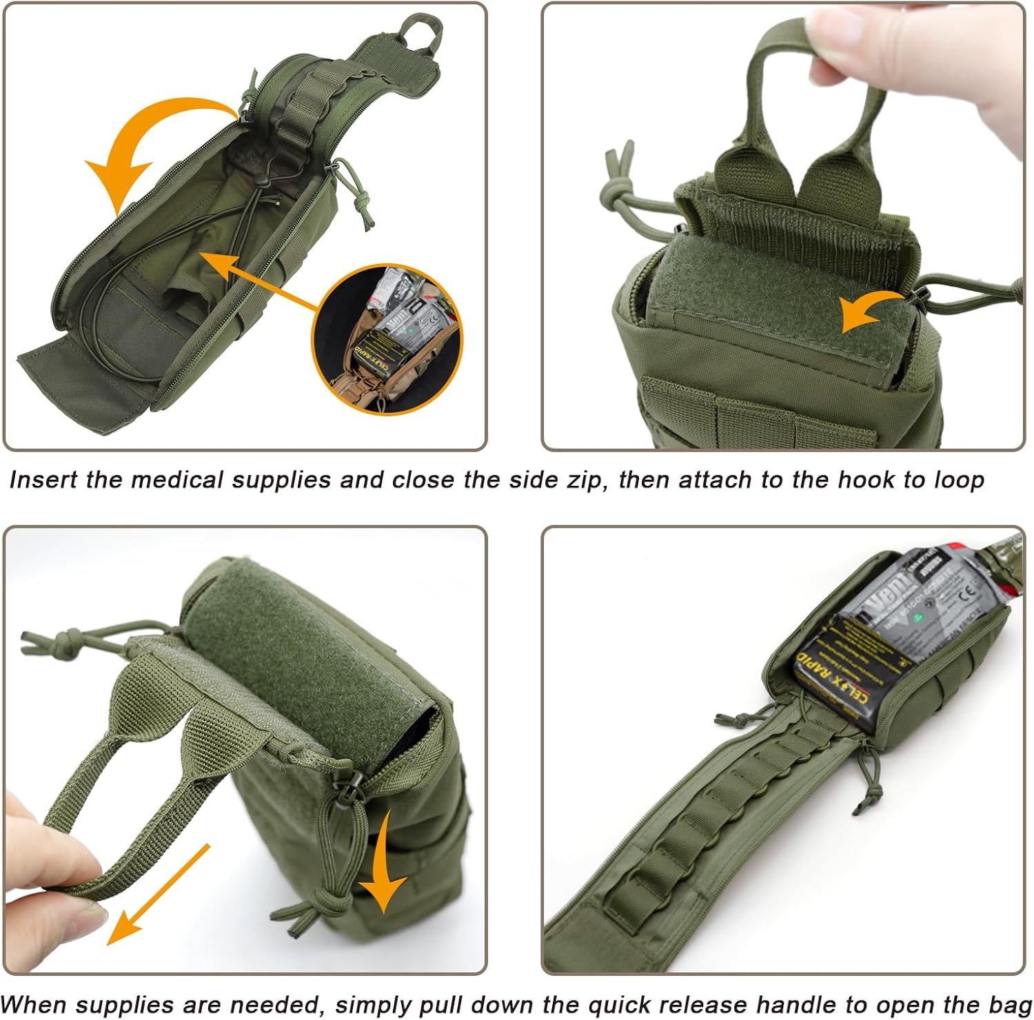 Customizable Interior: A system of elastic loops, adjustable webbing, and sleeves inside allows you to neatly secure various items like tourniquets, shears, and gauze, preventing them from shifting and making inventory checks simple.