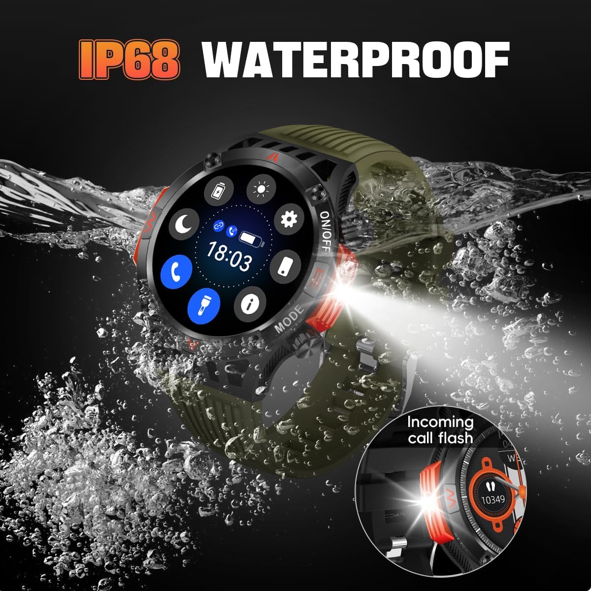 QTLLBT Feature-Rich Design for Enhanced Convenience – Explore a host of useful features on the military smartwatch, including flashlight, wake-up, weather forecast, find phone, stopwatch, timer, and pedometer. Enhance your daily life with added convenience and functionality.