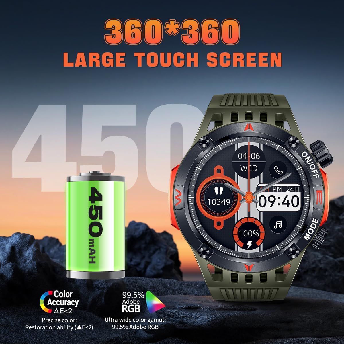 QTLLBT Feature-Rich Design for Enhanced Convenience – Explore a host of useful features on the military smartwatch, including flashlight, wake-up, weather forecast, find phone, stopwatch, timer, and pedometer. Enhance your daily life with added convenience and functionality.
