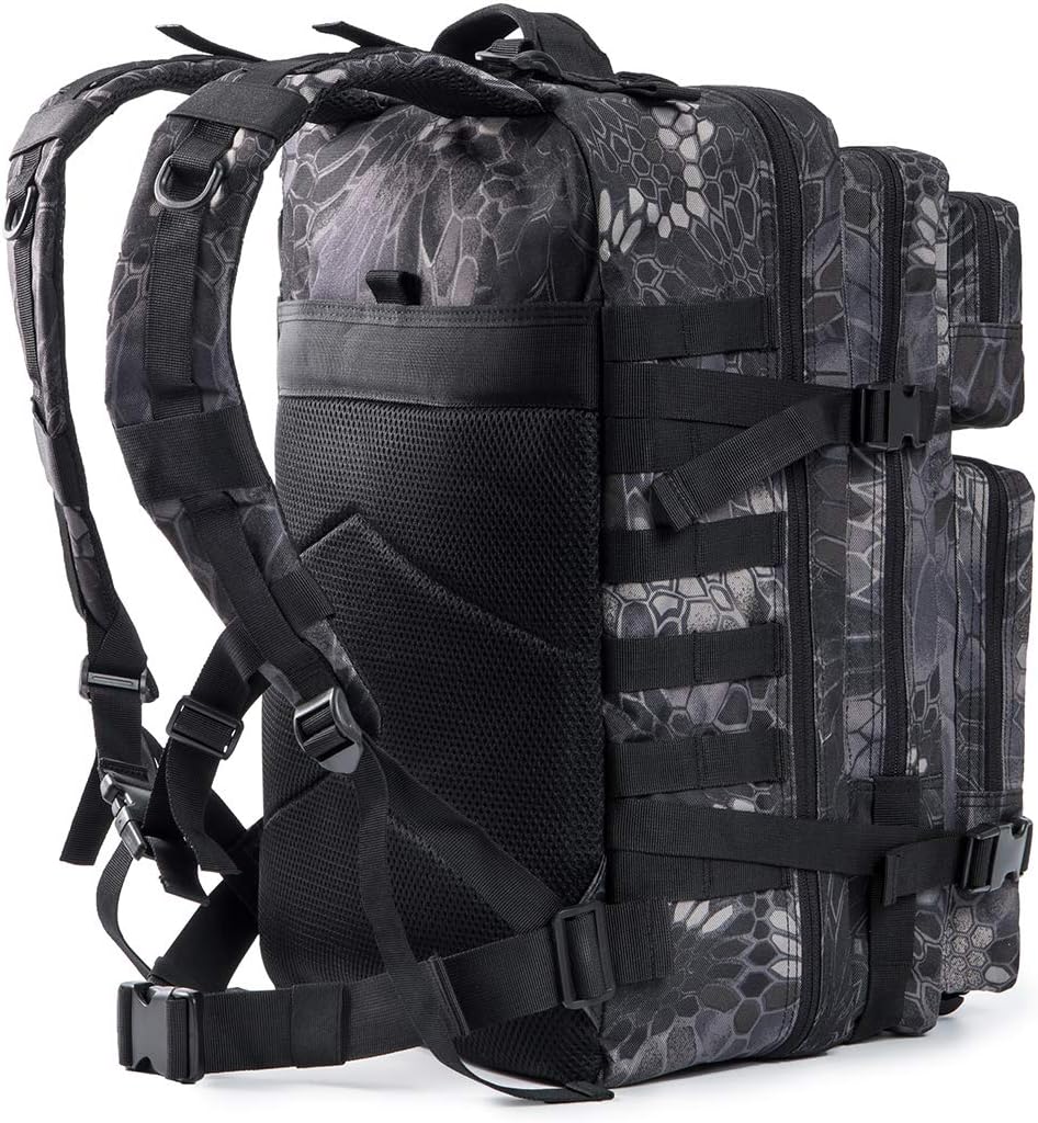 DURABLE & WATERPROOF: Military grade backpack is made from 900D polyester material, tactical assault backpack is reinforced and double stitched at all stress points. Resistant and tough and our Special coating makes our training backpack both water resistant and scratch proof