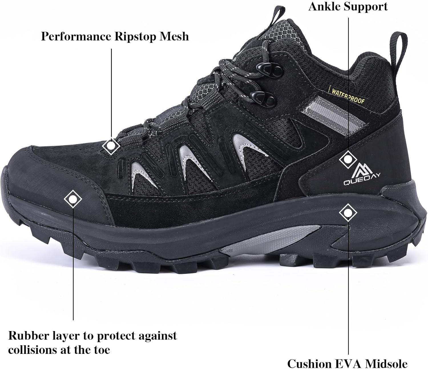 🥾 Queday Mens Womens Leather Waterproof Hiking Boots Lightweight Outdoor Walking Shoes Breathable Suede Hike Trekking Trails Camping Climbing — Review, Key Features & Current Price