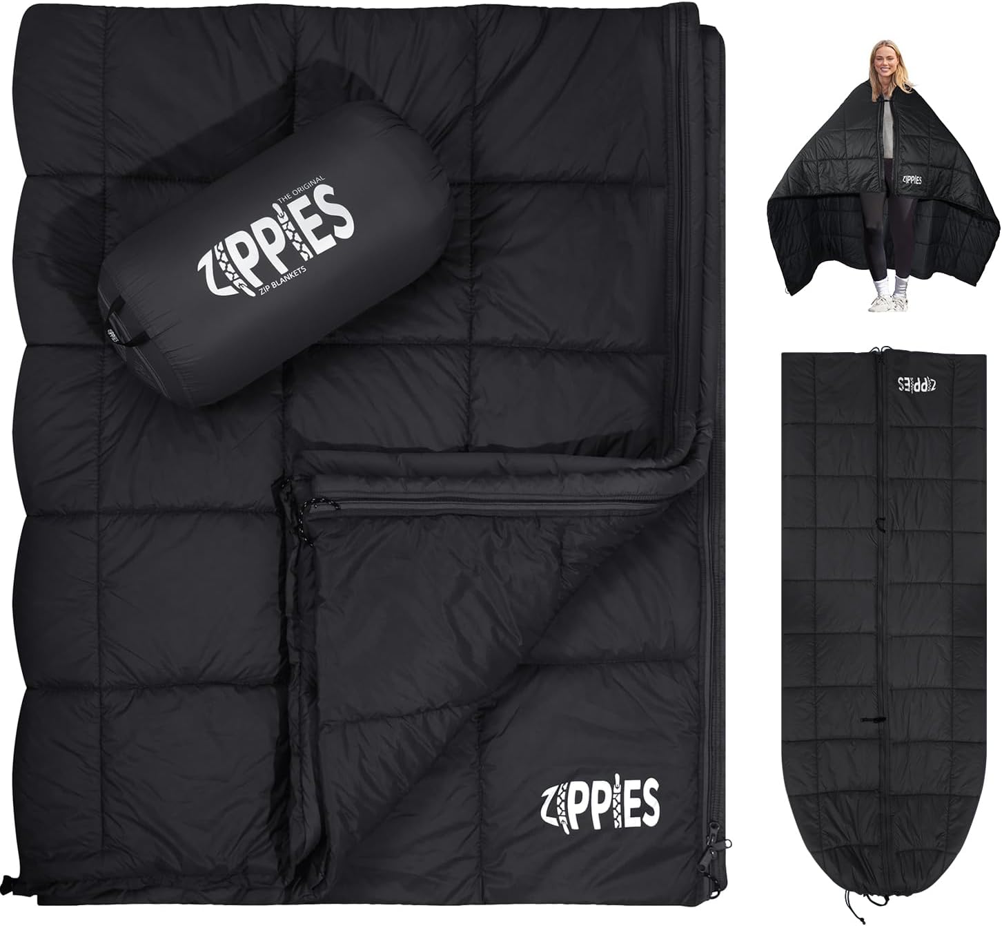 Your Warm, Lightweight, Packable, Versatile, and Cozy Companion for Camping and Backpacking.ZIPPIES innovative blanket redefines outdoor comfort, offering a multifunctional design that replaces wool blanket and serves as a lightweight yet warm alternative. Whether you need a cozy blanket, a versatile poncho, a snug quilt, a warm sleeping bag, or even a convenient pillow, our all-in-one blanket has you covered. With this single essential item, you’ll travel lighter, sleep sounder, and experience unparalleled convenience during your outdoor adventures. Say goodbye to carrying multiple items—ZIPPIES blanket is all you need!