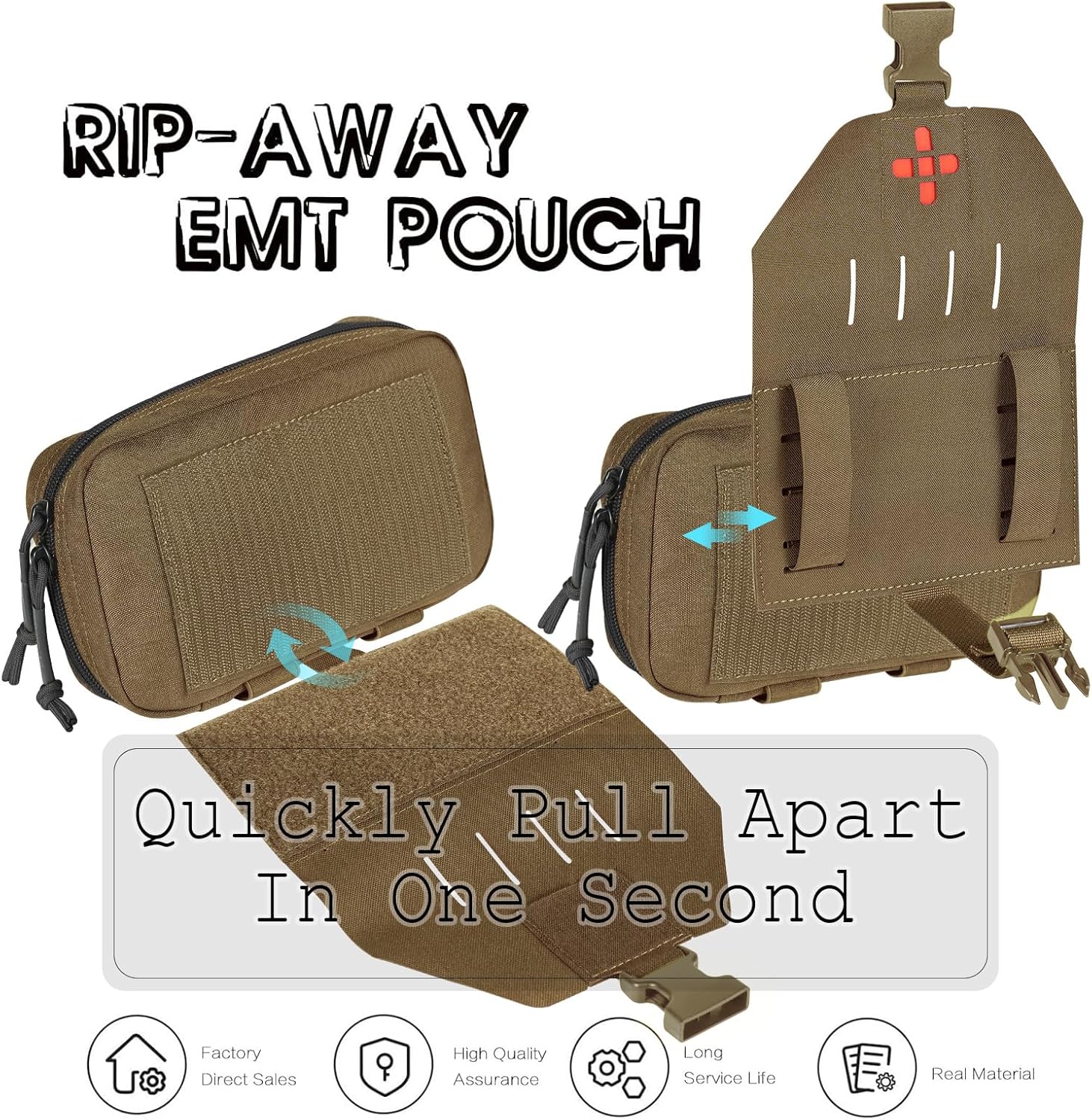 First Response:rip-away design equiped quick release buckle,when you need,you can obtain emergency supplies as soon as possible without dismantling MOLLE/belt.