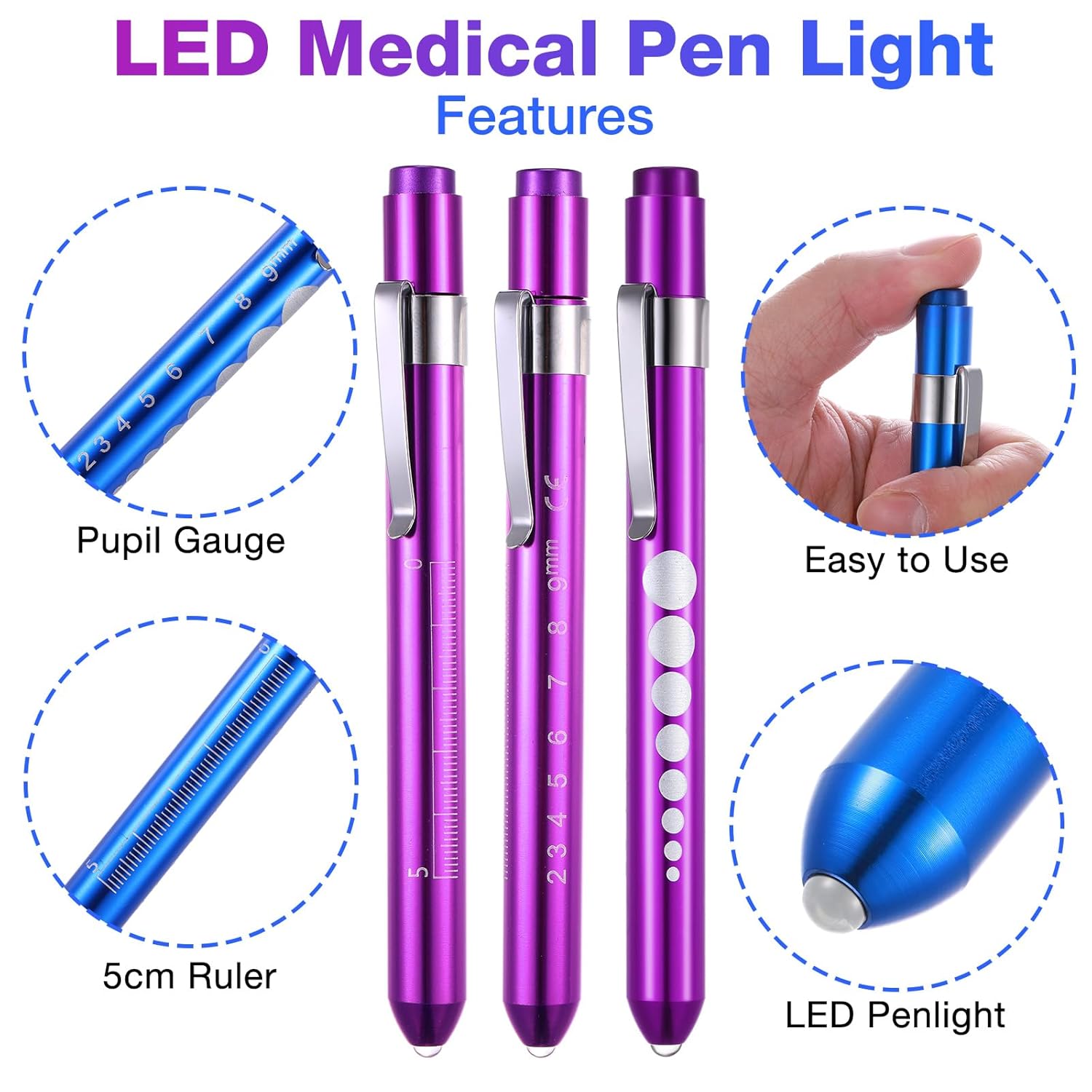 Portable Pen Light: the convenient clip design allows you to clip these pen lights for nurse on your uniform, or securely fasten in a bag, so that you can easily carry them around for use every day; This set of aluminum penlights comes with a battery to keep you ready to go, and the gentle light will not cause discomfort or harm to the patient, efficiently inspect the eyes, nose and throat with a bright pre focused sealed concentric beam