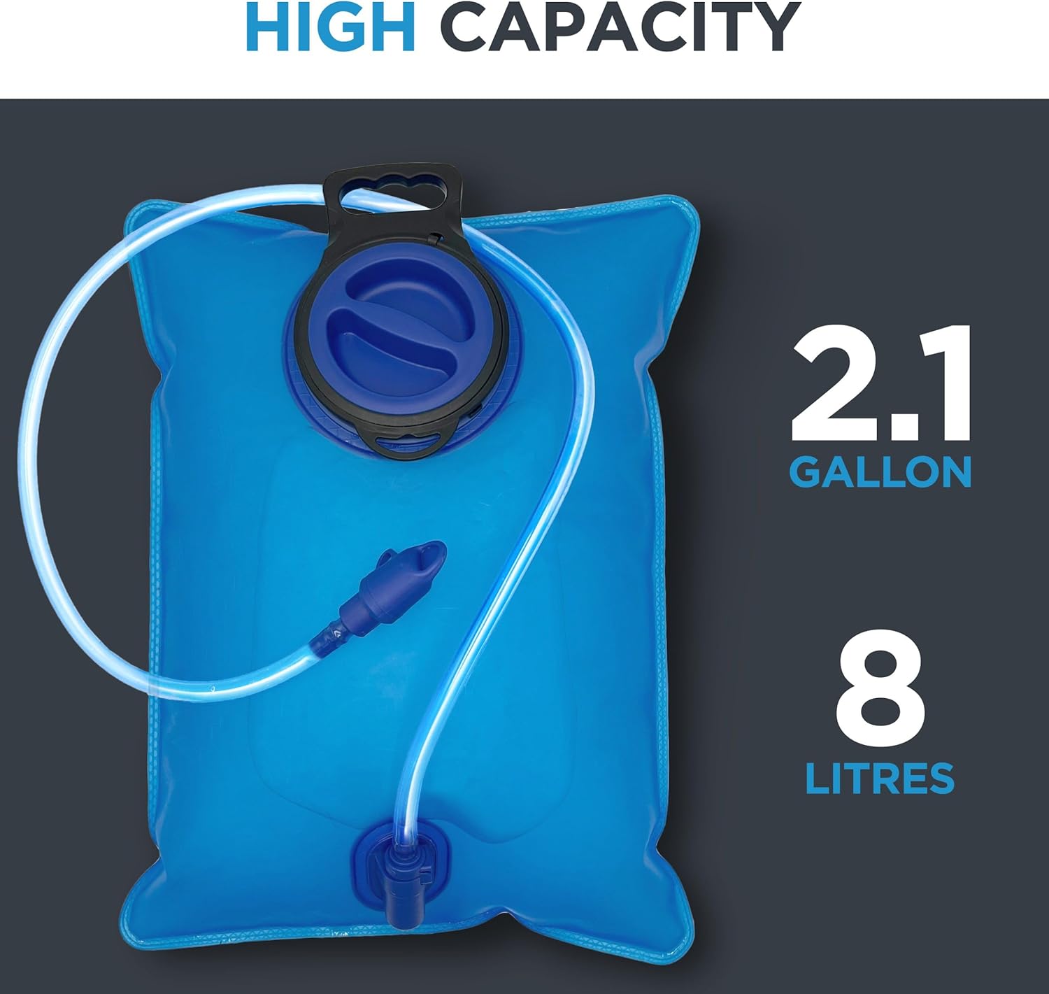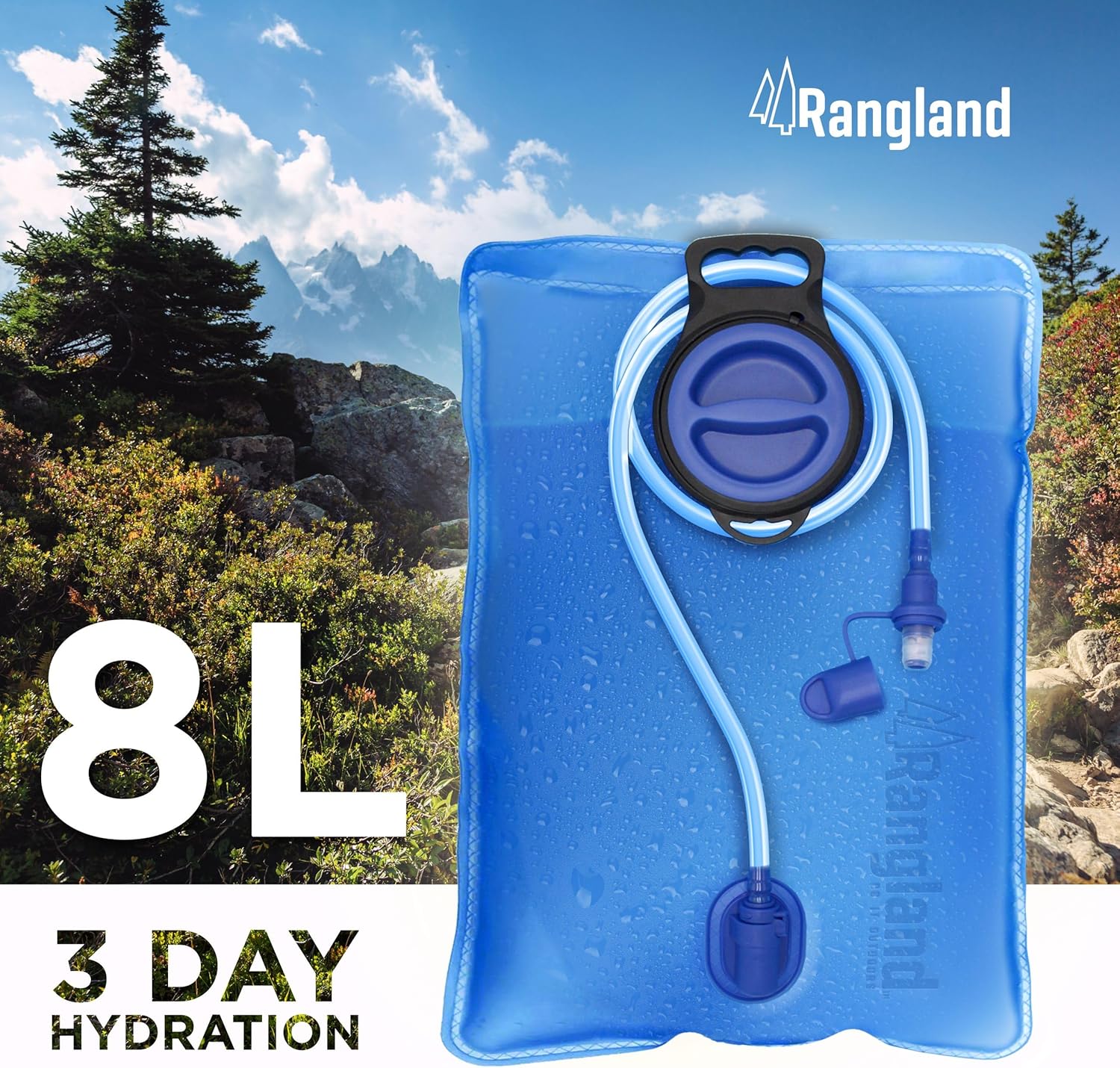 Extra Large Capacity: With an 8-liter / 2.1 gallon capacity, the Rangland Hydration Bladder can hold 200% more water than a standard 3L bag.