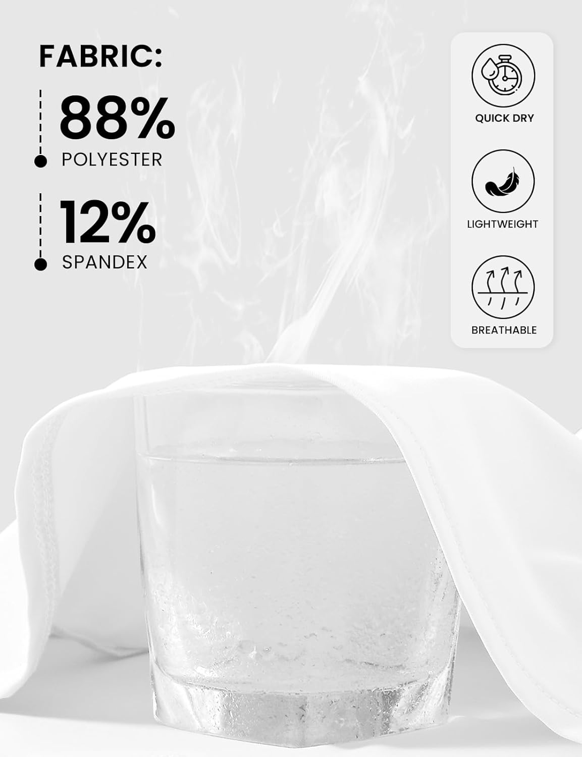 Lightweight & Quick Dry Fabric: 88% Polyester & 12% Spandex