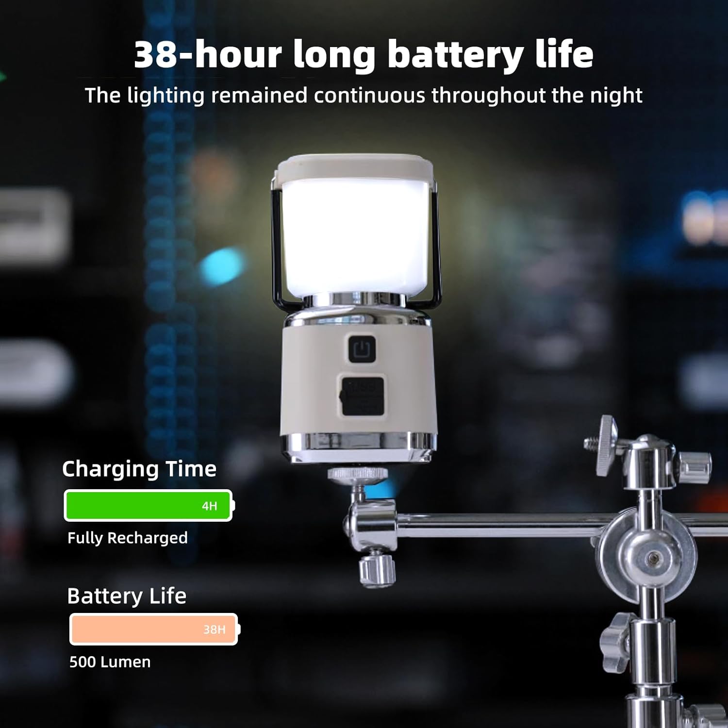 Slip Proof Handle & Quick disassembly design:This rechargeable LED lantern features a slip-proof handle for easy hanging and a hand-free light source. This LED camping lantern can also help light up your patio or backyard during winters!The bottom has a 1/4 threaded design, which allows for the installation of a tripod and quick installation and removal of the tripod