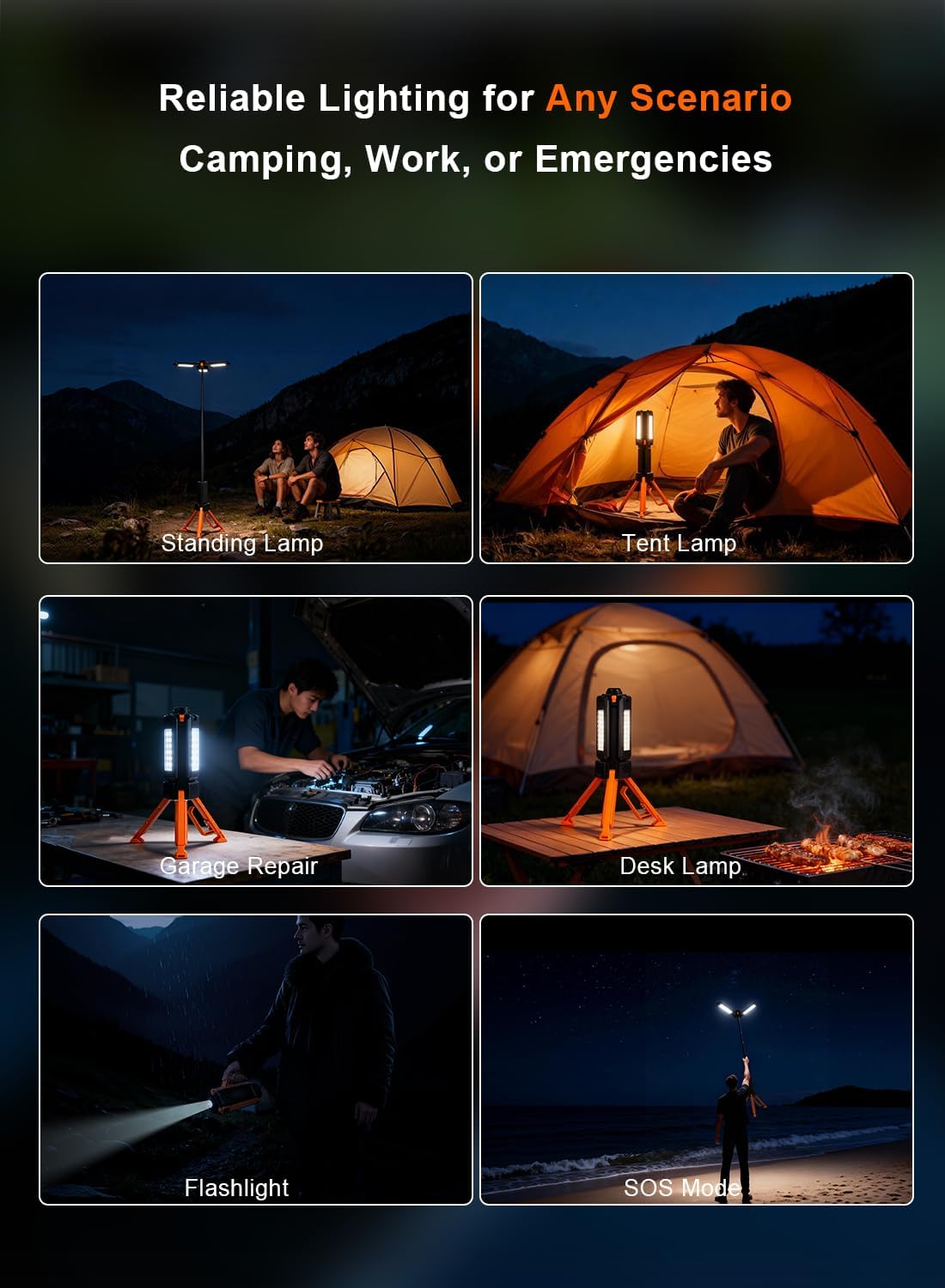 Versatile & Multi-Purpose: This is the ultimate multi-purpose light designed to adapt to your entire lifestyle. It seamlessly transitions from outdoor adventures (camping, hiking, fishing) to home and garden use (backyard BBQ, reading lamp, power outage emergency light), and even serves as powerful professional equipment (for auto repair, workshop projects, photography, and live streaming).