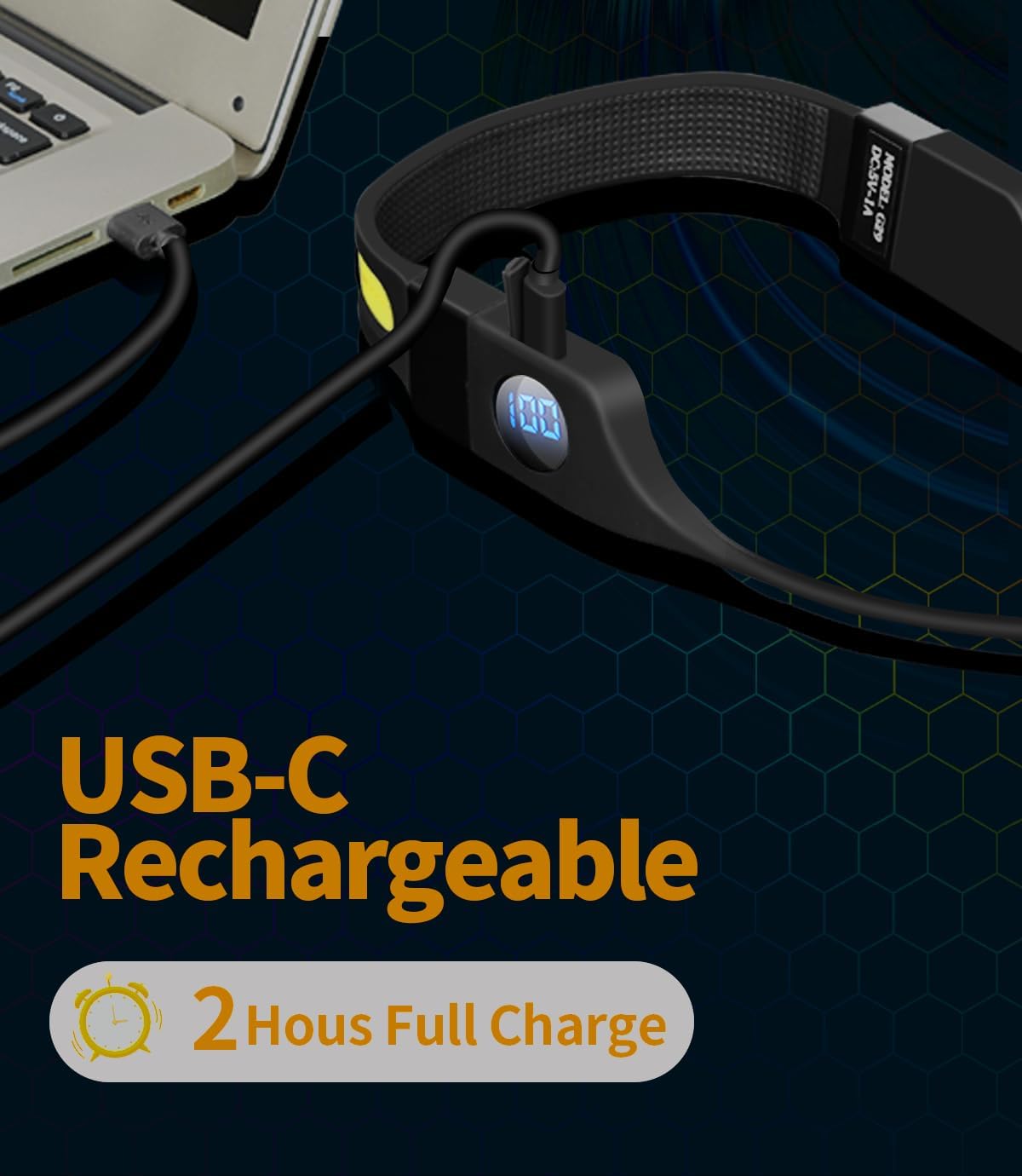 Rechargeable & Battery Digital Display : Headlamp was built-in rechargeable battery, don’t have to purchase and change dry batteries again, save your money, at the same time protect the environment. The design of power digital display make you can check the accurate power at a glance.