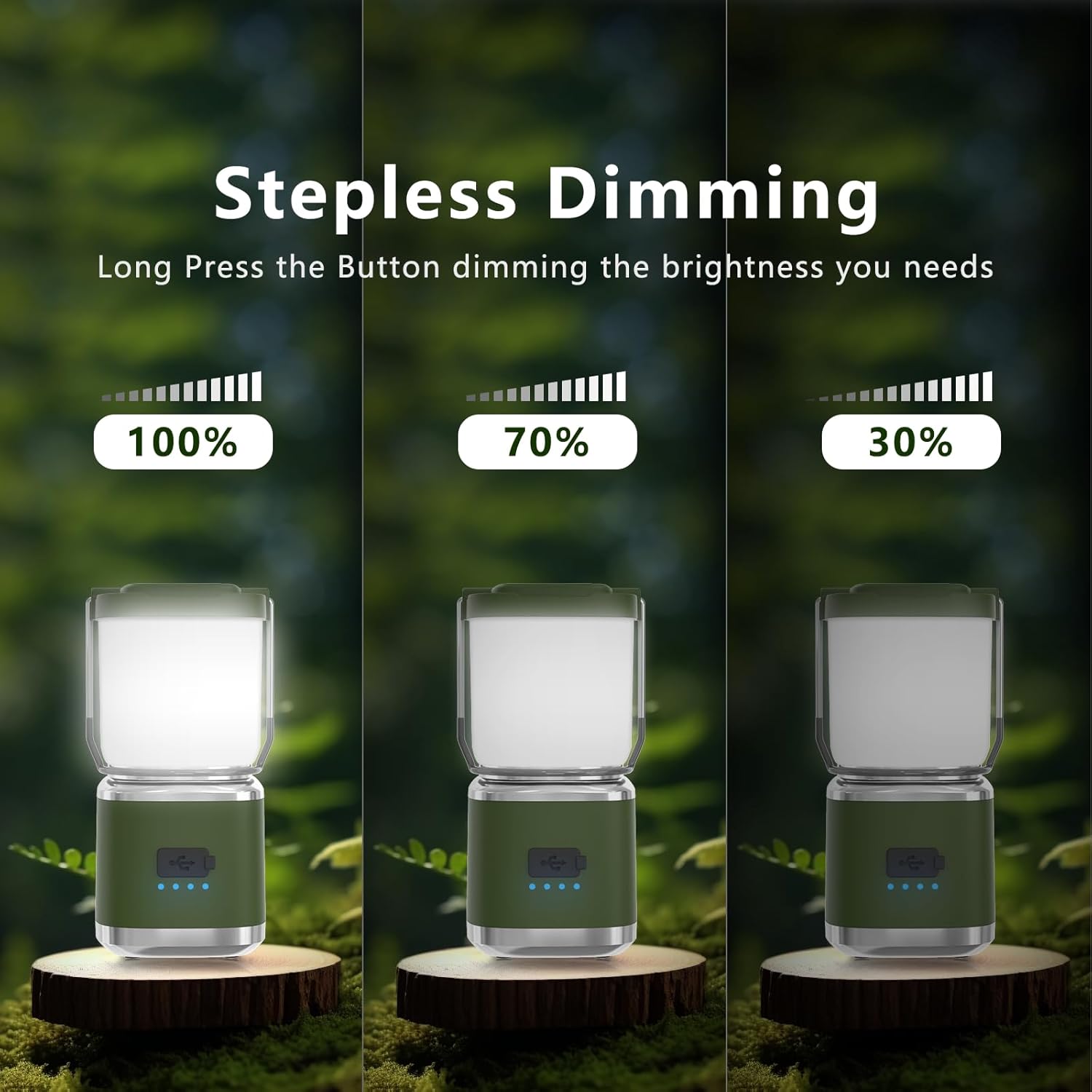 4 Lighting Modes, Dimmable: This outdoor Camping Lantern has 4 Light modes: Cool White/ Warm White /Full Brightness /Red Strobe, Red Strobe Light can be act as a warning light once your car is in trouble; Long Press the button get to Dimmable Mode, Adjustable the brightness between 5% and 100% to meet your different Lighting needs .