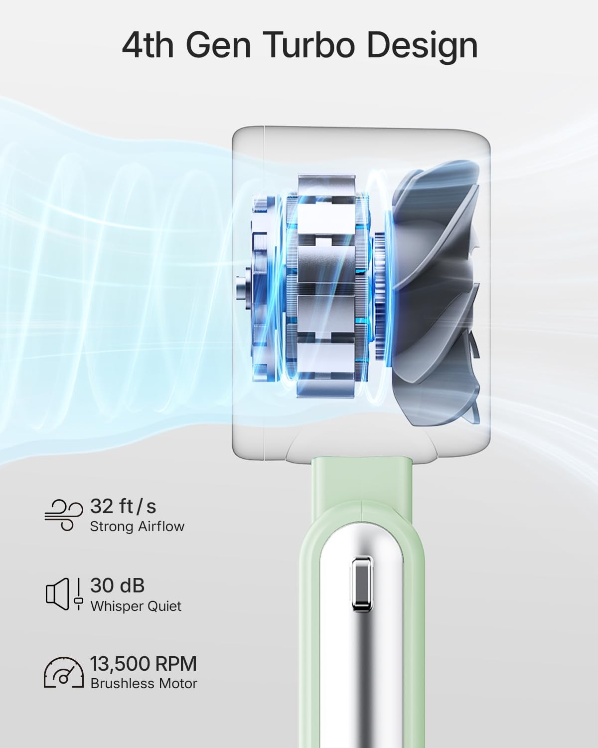 Ultimate Cooling Experience: BEARWIND handheld turbo fan uses a 4th-gen high-speed airflow system, 7 blades turbo design, and advanced brushless motor. With speeds up to 9 m/s, 3x stronger than ordinary fans, it’s ideal for travel and instant cooling