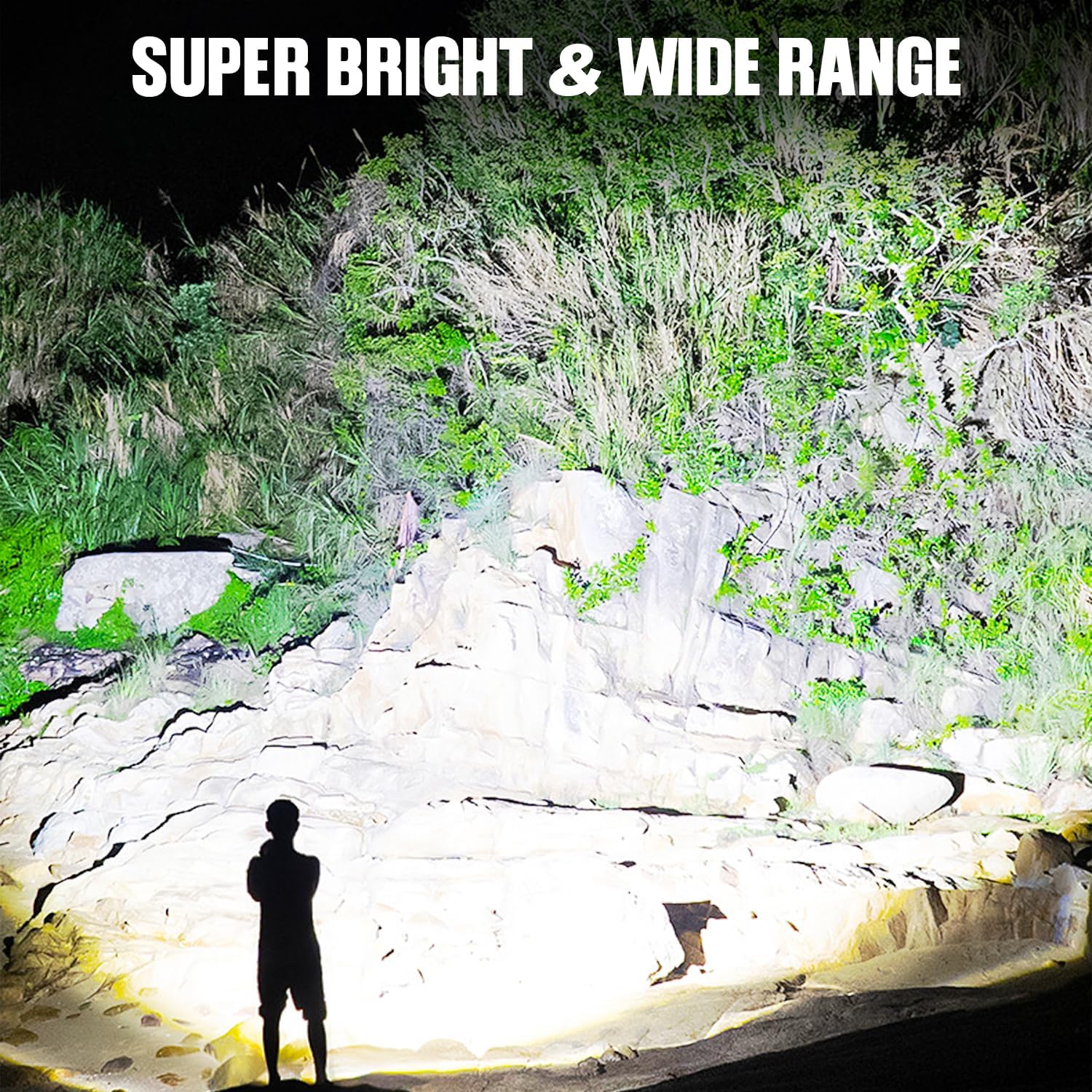 🔦【99,000LM SUPER BRIGHT LED FLASHLIGHTS】2-PACK powerful rechargeable LED flashlight with upgraded LED chip, 20 times brighter than other flashlights. A rechargeable high lumen flashlight can easily light up your entire farm. The furthest range of the brightest flashlight is up to 3280 feet. The high-power flashlight can last for 15 hours, which is easy to carry when camping or daily use.