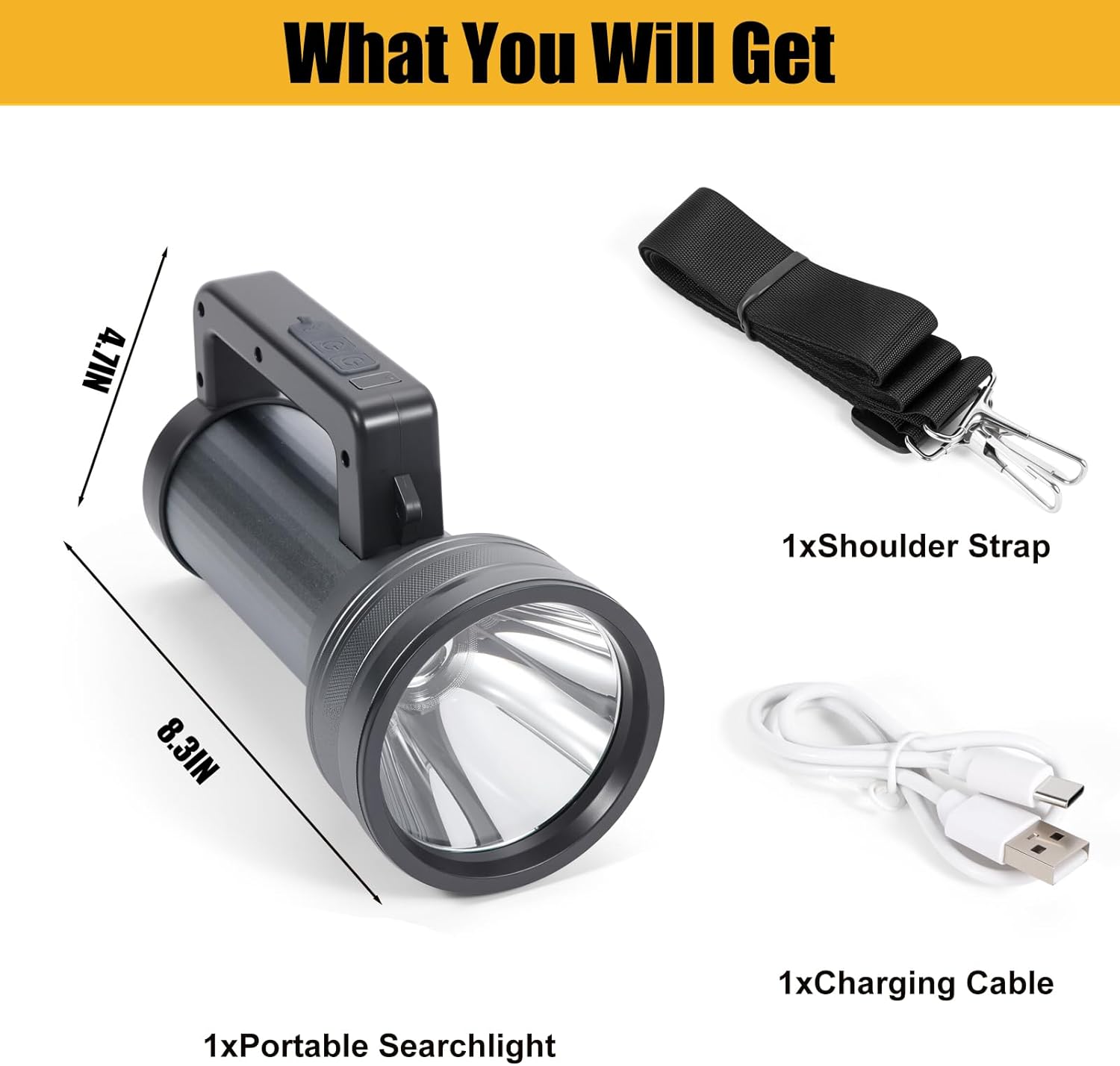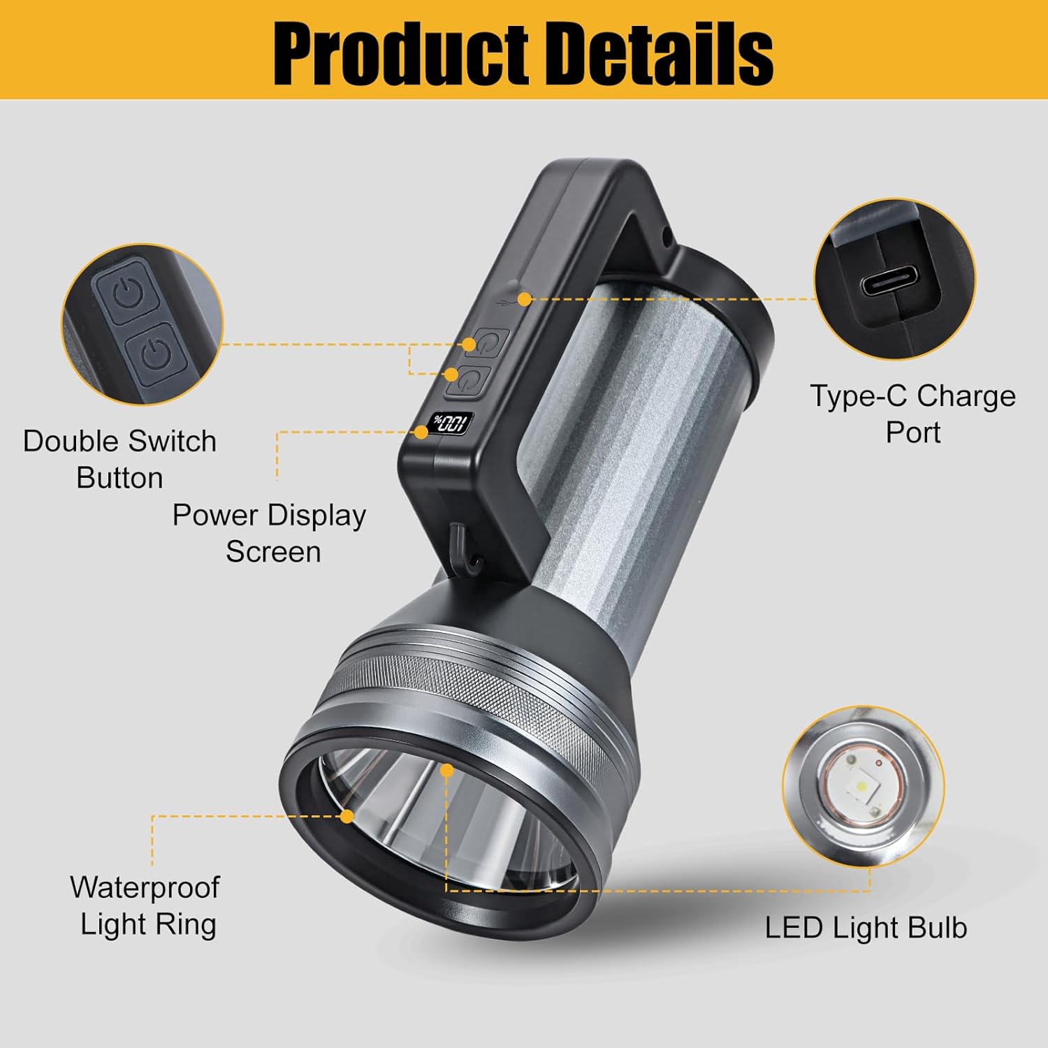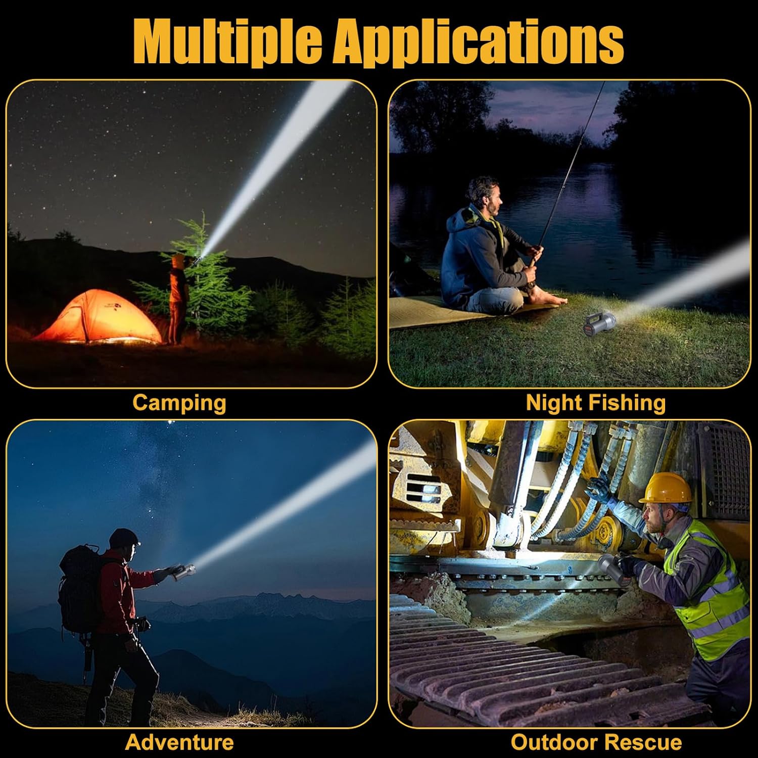 ✅ Enduring Power – 6000mAh Battery with 8–10 Hour Runtime: Powered by a high-capacity 6000mAh rechargeable battery, this flashlight delivers long-lasting brilliance for up to 10 hours. Whether you’re navigating dark trails, working through the night, or lighting your way at home, it’s built to last as long as you do.