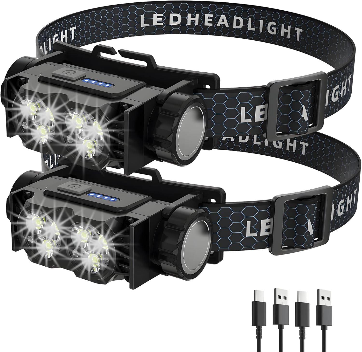 USB C RECHARGEABLE & LONG BATTERY LIFE: Built-in a 1200mAh large capacity battery, the head lamps LED rechargeable super bright can last for 2.5-8 hours when fully charged, depending on different light modes. Designed with a convenient TYPE-C charging port, the head lights for forehead can be easily and quickly charged within 2.5 hours by a USB-C charging cable included. No worry about changing battery and say goodbye to traditional batteries!