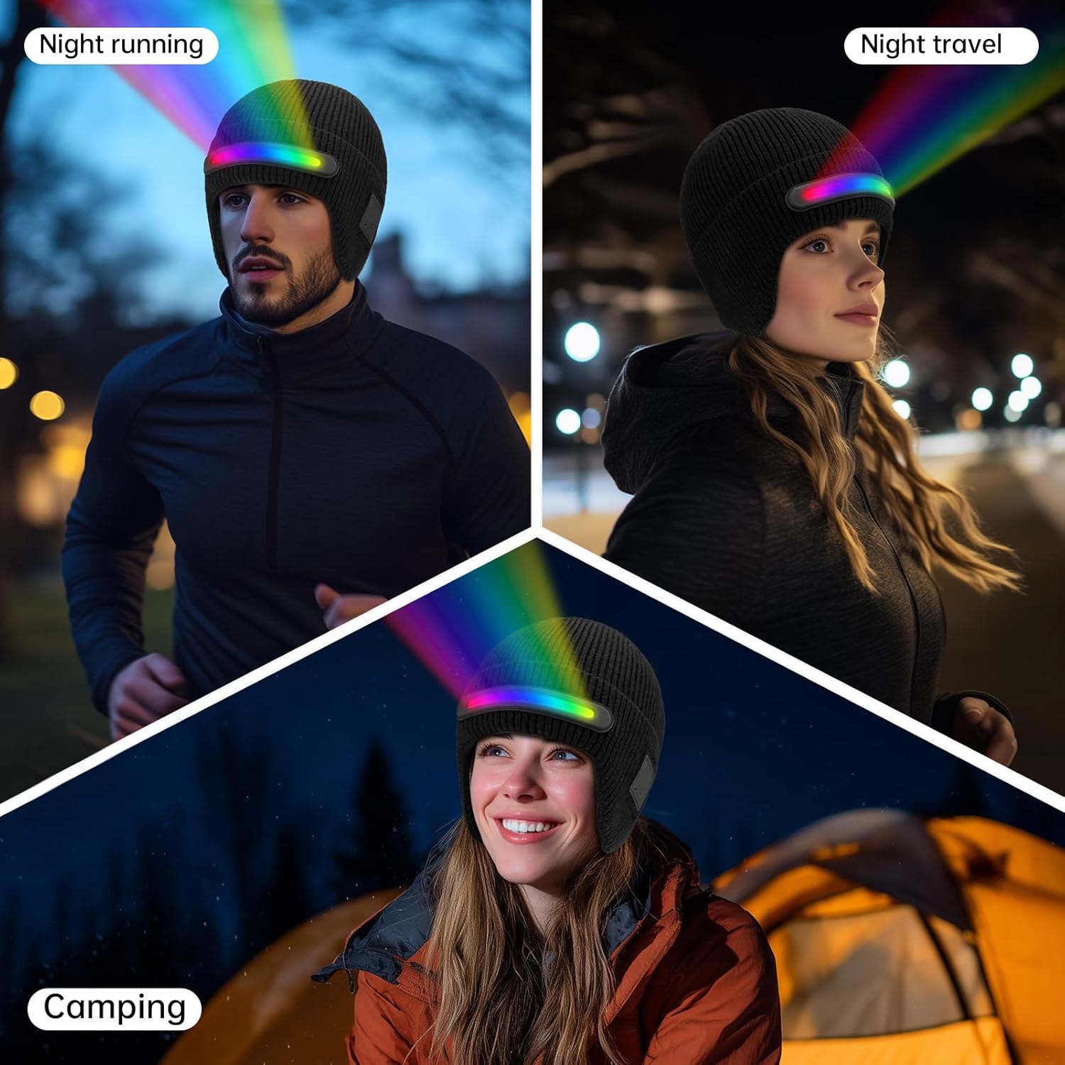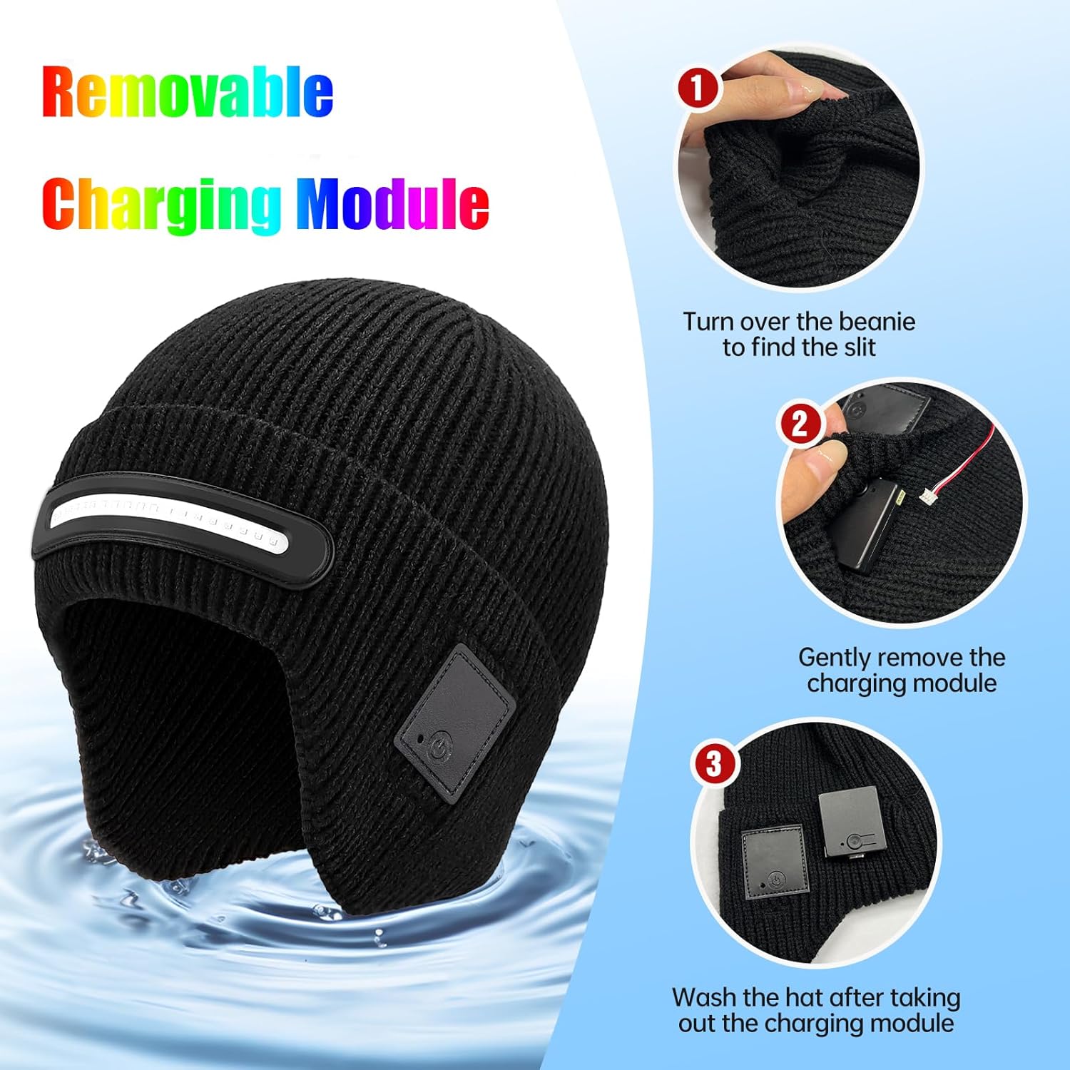 【Warm & Cozy】Crafted from soft, stretchable acrylic, this knitted cap offers a comfortable one-size-fits-most fit. Its warm earflaps provide extra protection in cold weather, making it ideal for hands-free lighting during camping, running, or travel. For optimal care, simply hand wash at 30°C or below. Remember to remove the built-in charging module before washing. The LED light strip is fixed in place and does not need to be disassembled.