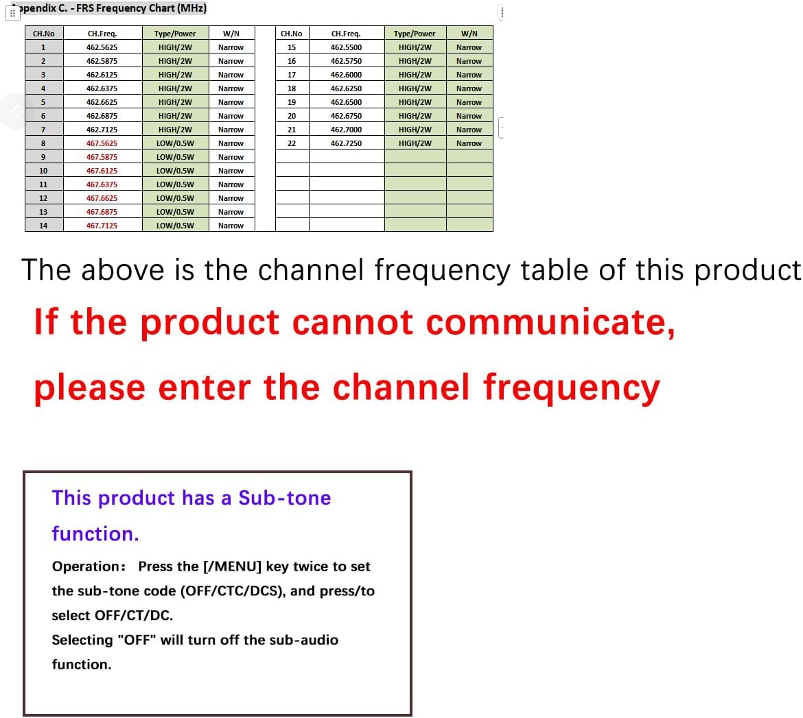 【Two way radio】FCC ID: 2AJGM-F22. Baofeng F22 have FRS 22 channels, 50 CTCSS privacy codes and 105 DCS privilege codes.You can set your own main channel and privacy code without worrying about being disturbed.When the walkies talkies on the same channel and privacy code,you can communicate with other brands FRS radios.