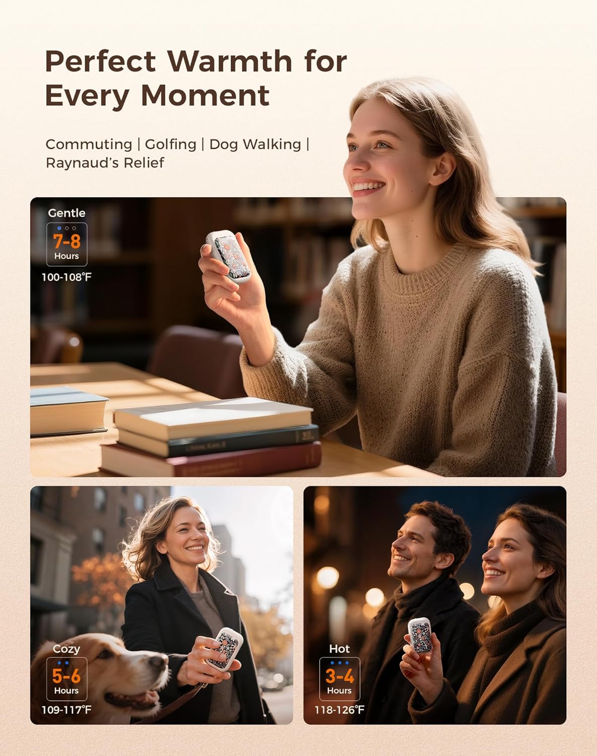 Instant Heat, Lasting Warmth: Unlike disposable hand warmers, it is a rechargeable and reusable hand warmer. This USB hand heater offers up to 8 hours of continuous heat on the lowest setting, with three adjustable temperature levels ranging from 100°F to 126°F, providing personalized warmth for you all day long
