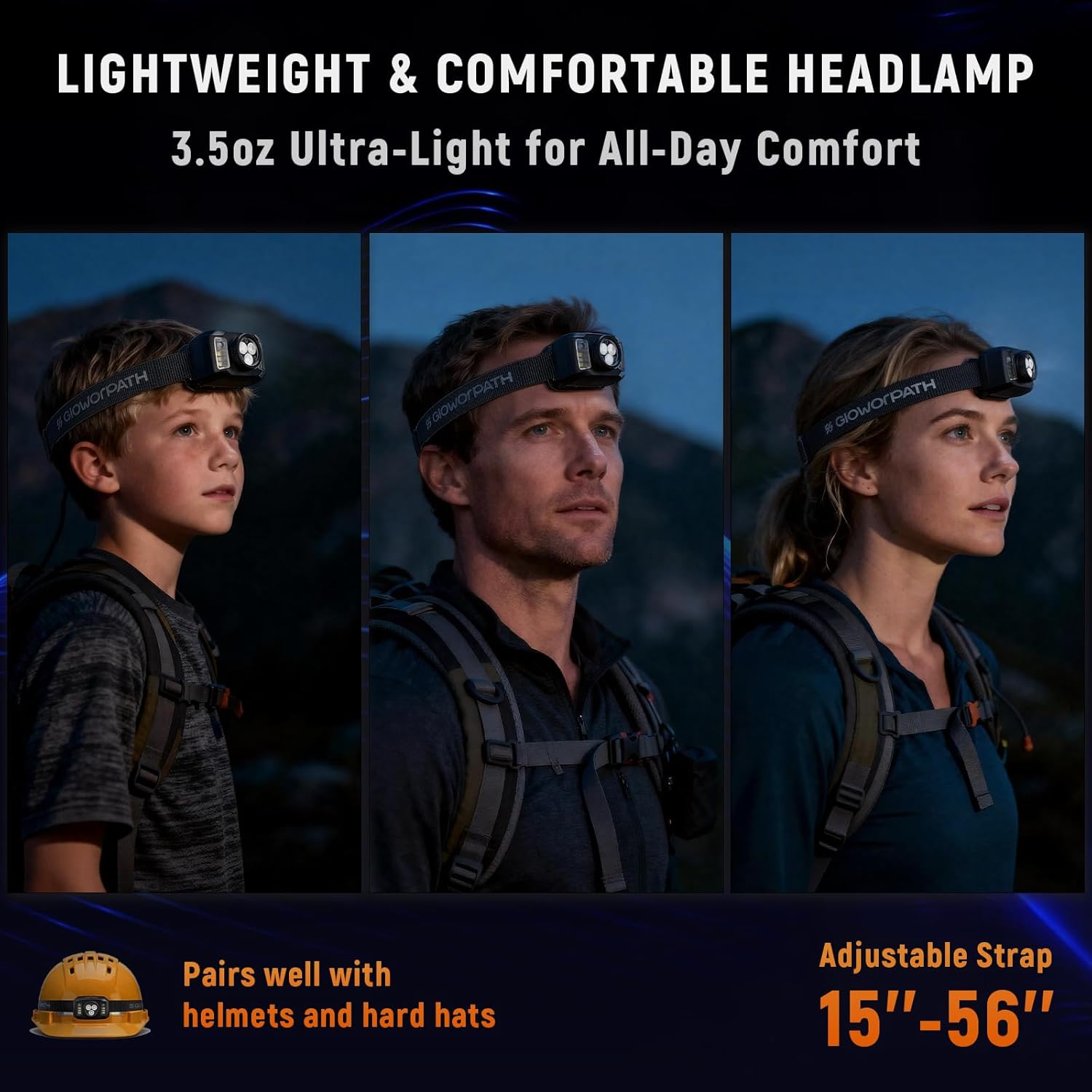 Why Choose GloworPath: Package including 2 x headlamps, 2x USB-C, 2 x user manual. If any questions about our camping headlamp, please feel free to click on the history order to contact us, we will sincerely satisfactory solution for you.