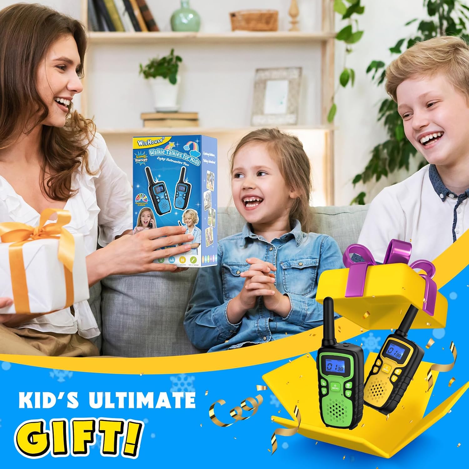 【Nature-Inspired Gift for Curious Kids Ages 4–10】:The green and yellow color combo makes this 2-pack walkie talkie a perfect gift for kids who love nature, camping, or imaginative play in the backyard.