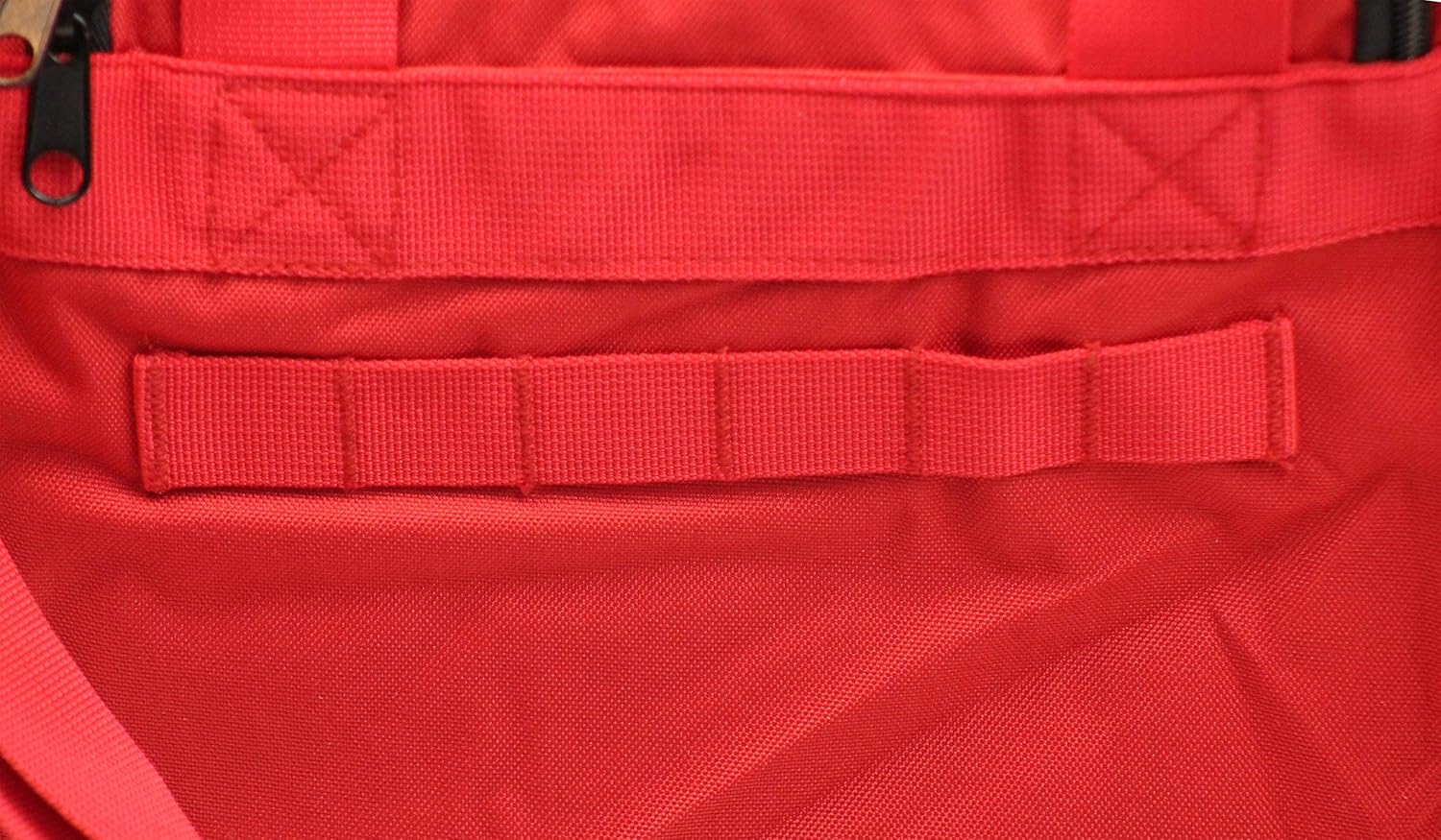 This Red EMS / EMT / Medic gear bag is made of sturdy 600D Polyester with water resistant PVC coating on the interior to keep your gear dry. This gear bag has room for all of your emergency gear and comes in classic bright red color with a Medic’s white cross logo in white stamped on the top flap. An adjustable / removable shoulder strap and top carry handles with hook & loop closure make it easy to carry. It has a large main compartment with removable organizer divider to keep you gear separated and organized for quick access in an emergency. It’s compact 22″ x 11″ x 11″ size is just right for a quick grab and when you’re on the go. Fits 4 Adult BVM easily, 6 child BVM, C collars, IV bag, and can even hold a d size oxygen tank. Makes a great lifeguard bag as well.