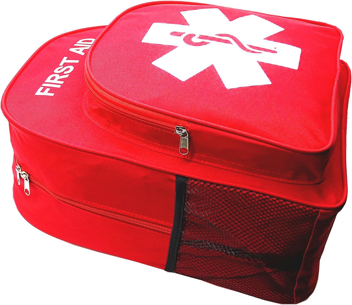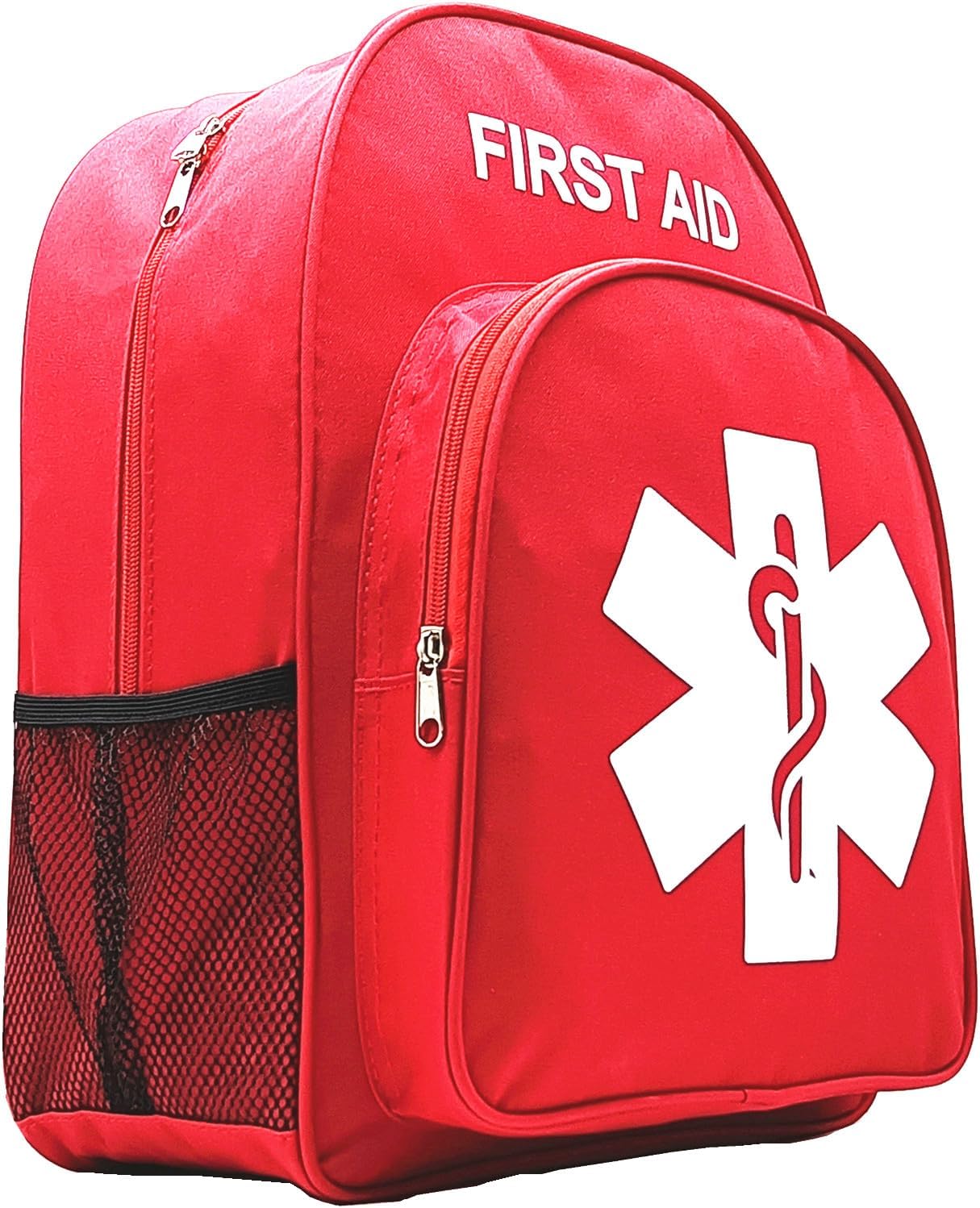 This is an empty backpack with size 16*12*6inch/40*30*15cm for first aid kits which has good product quality, long-lasting stitching and seams.