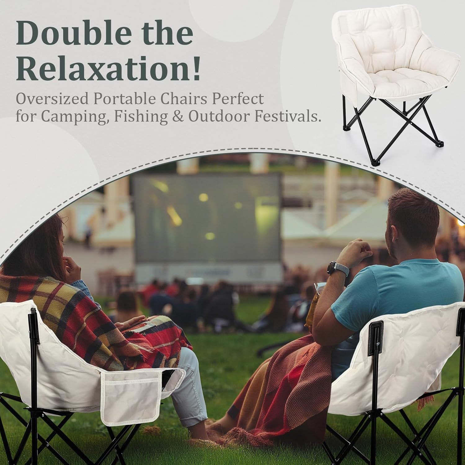Durable Materials: constructed with Oxford fabric and reinforced steel tubing, these camping chairs withstand frequent outdoor use; Artificial cotton filling, stable support, long-term use in outdoor environments; The water-resistant white finish while complementing various outdoor settings