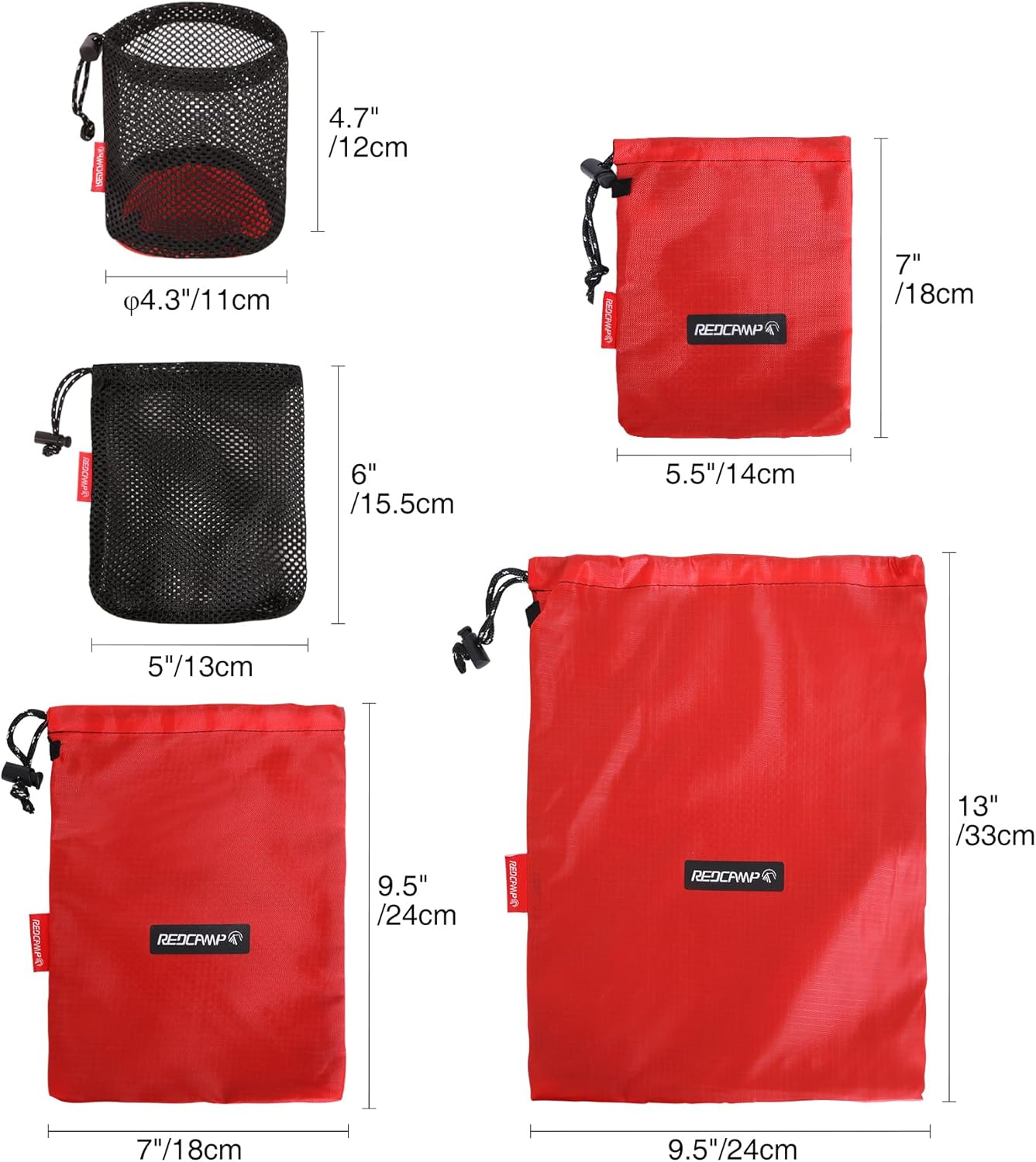 Versatile 5-Piece Set: This small drawstring ditty bags set includes multiple sizes to organize everything. Perfect for keys, jewelry, daily accessories etc., in the mini mesh pouch bags; toiletries or small tableware in the medium storage bags; and lightweight sleeping bags or clothing in the large stuff sack bags.