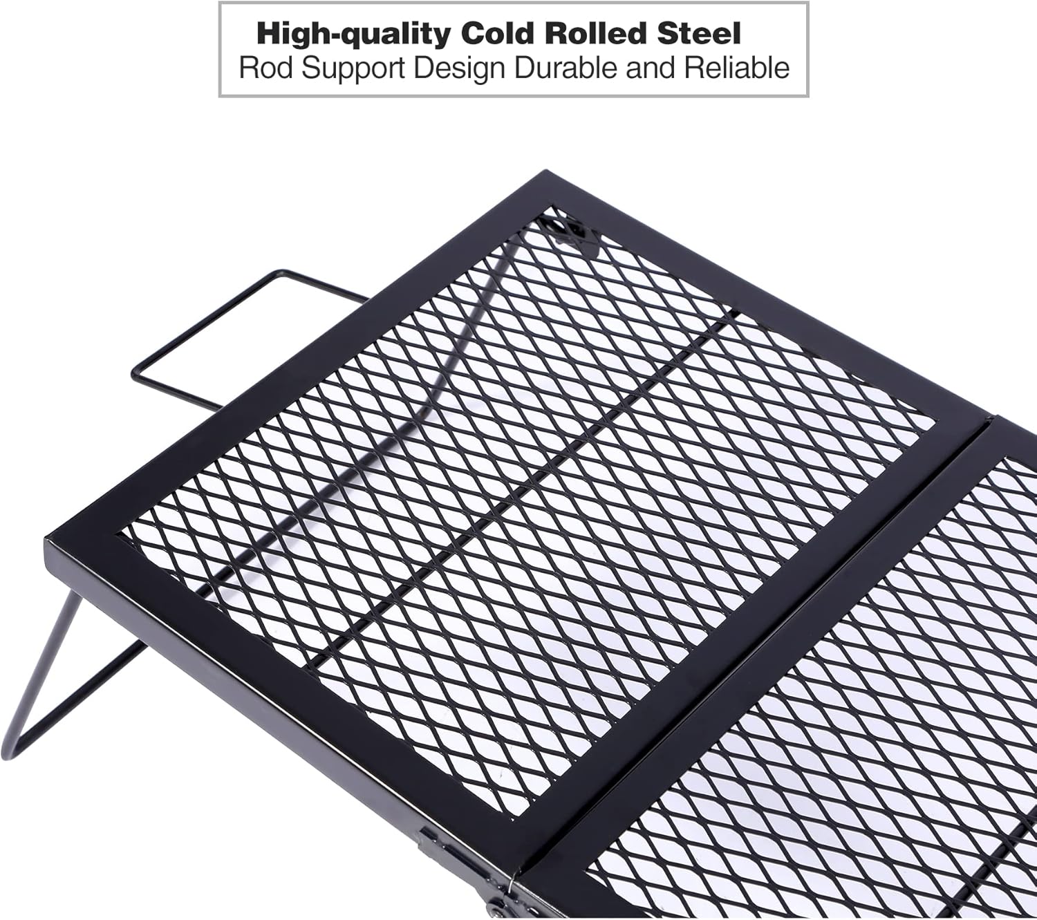 Material: The heavy-duty folding campfire grill is made of high-quality cold rolled steel, which is durable and reliable in performance