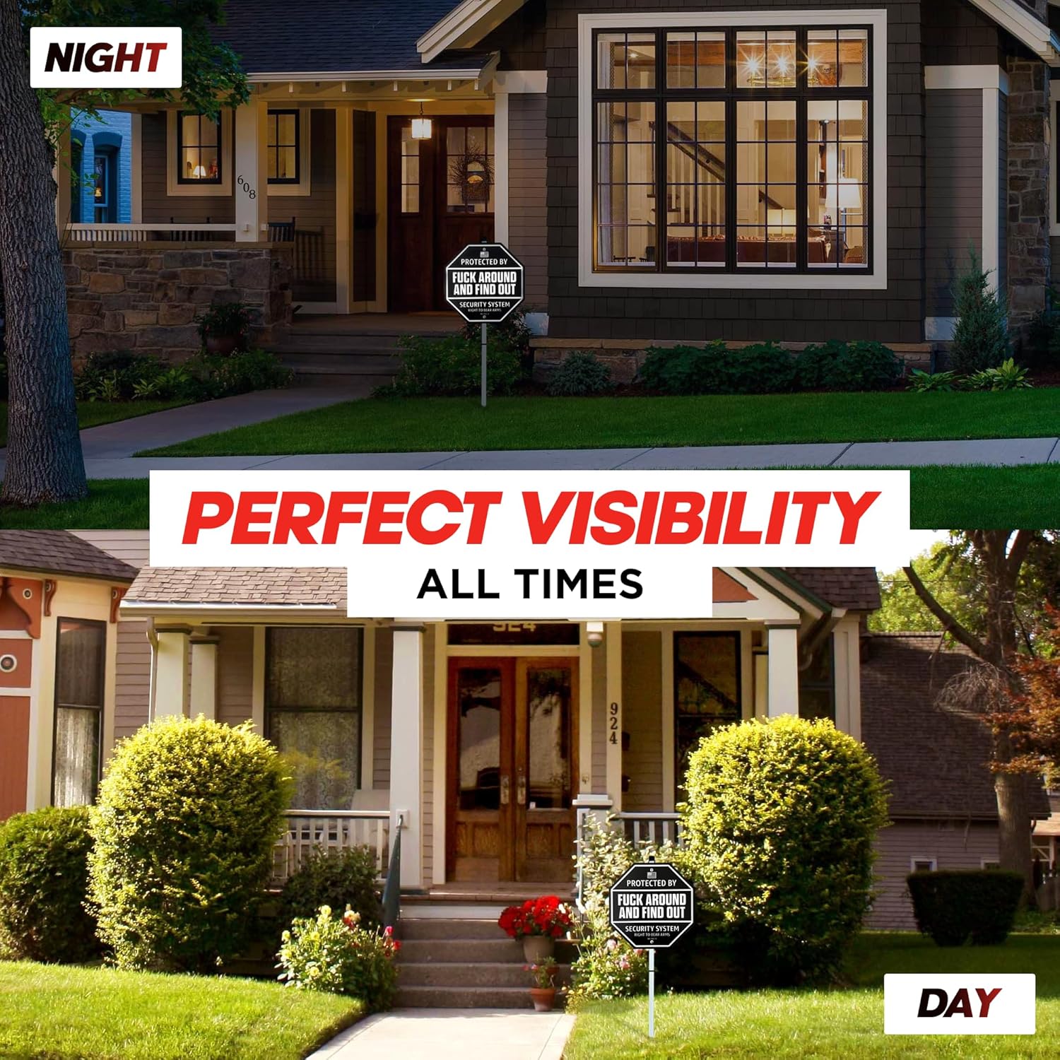 BOLD & STRONG WARNING – Keep your neighbors and community safe by displaying our Protected by Fuck Around and Find Out Sign in your front yard, backyard or side entrance gate. Let everyone know your property is secured and monitored 24/7. A clear warning that you’re ready for self-defense and combat!