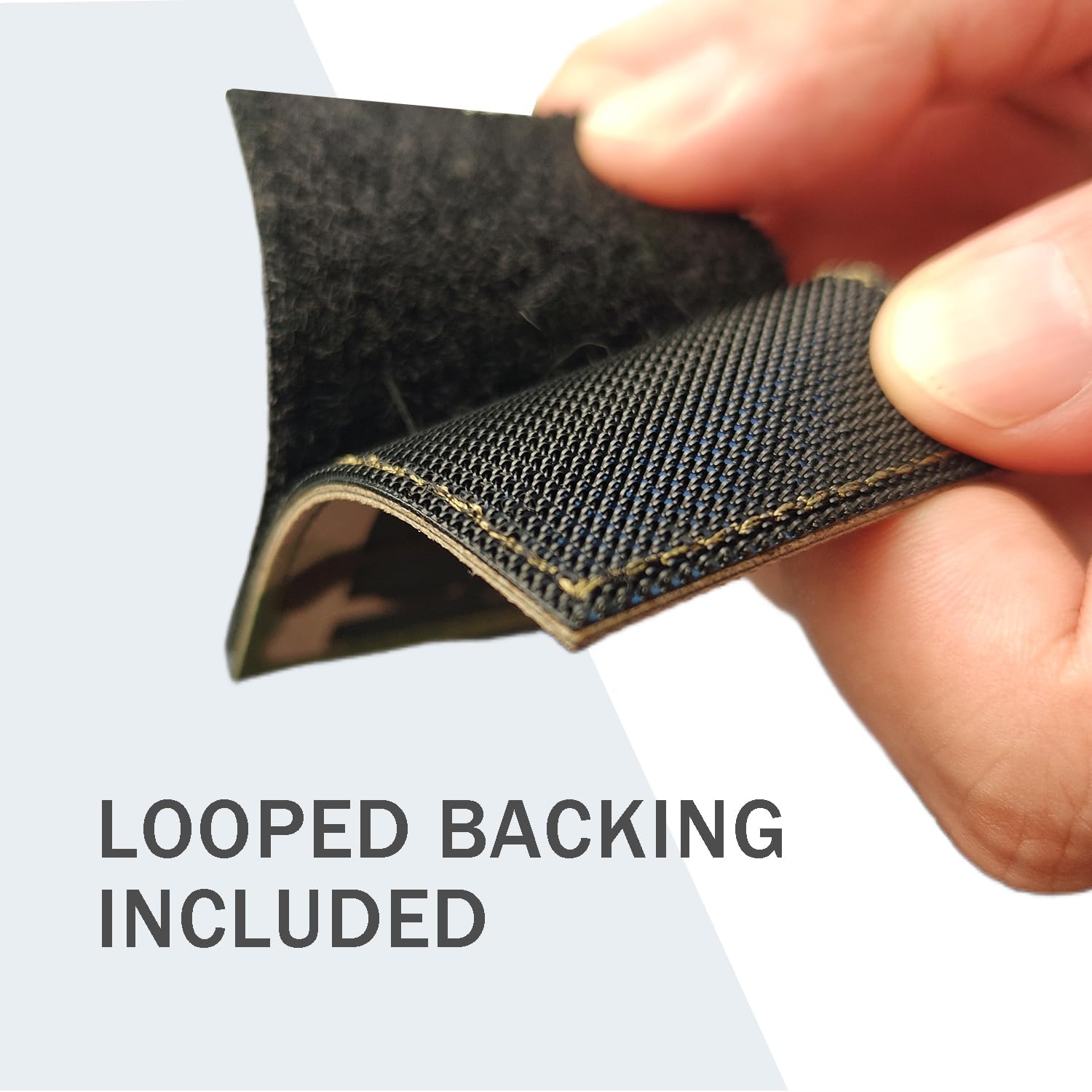 Hook and loop backing for sewn-on application or easy attachment to tactical, backpacks, hats, jackets, pants, dog vests, gear, etc. Comfortable, durable and easy to remove and wash