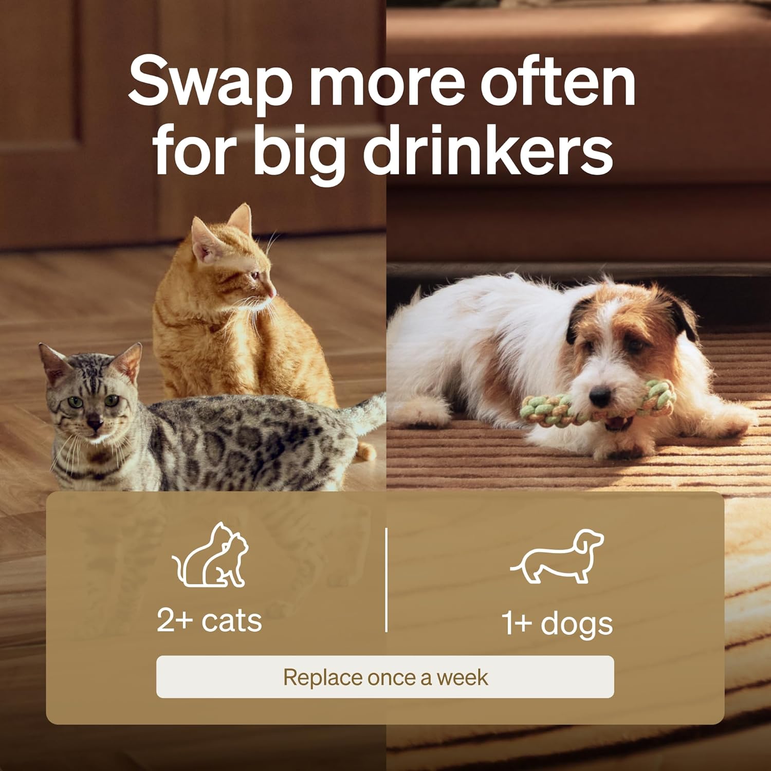 For Optimal Use – Soak the filter for 5 minutes and rinse for 30 seconds before use. To maintain the filtering effect, recommended to replace the filters every 2 weeks. If you have multiple pets, it is recommended to clean the fountain and change the filter more often.