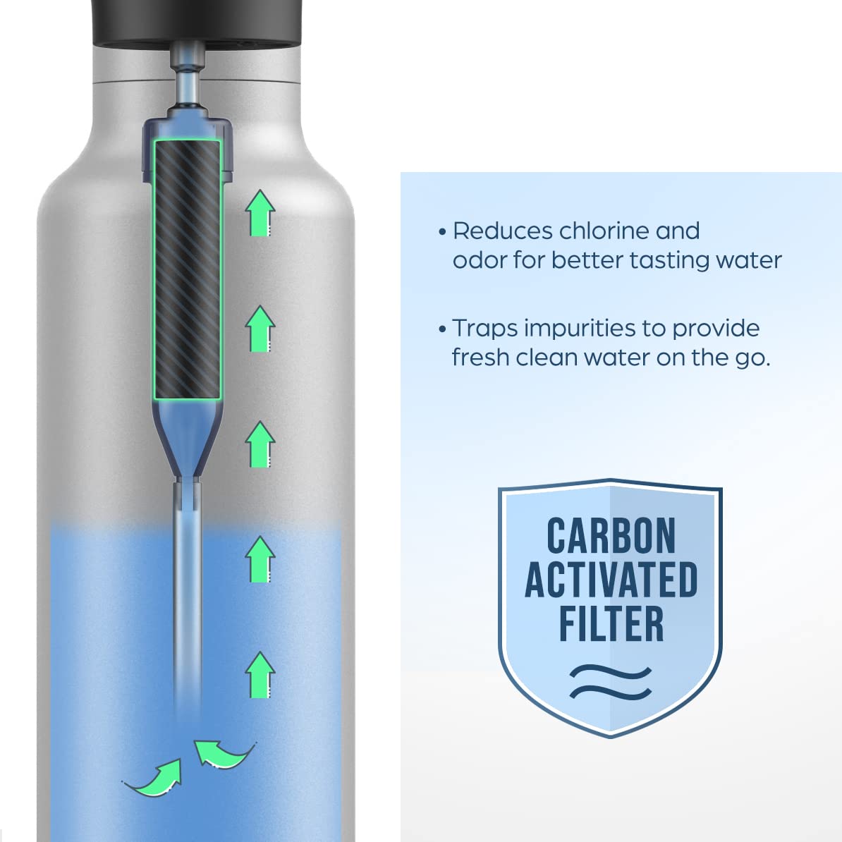 Set includes 1 leakproof lid, 2 straws, 1 filter housing, and 3 filter cartridges. Turn your ordinary water bottle into an on-the-go water filter and enjoy clean and filtered water wherever your adventures take you.