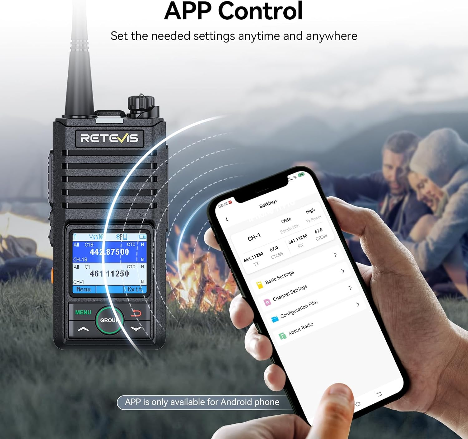 APP control; support using RETEVIS APP to edit RB58 walkie talkie; the APP is compatible with iOS and Android platforms; easily modify walkie-talkie settings anytime and anywhere; no need to carry a computer