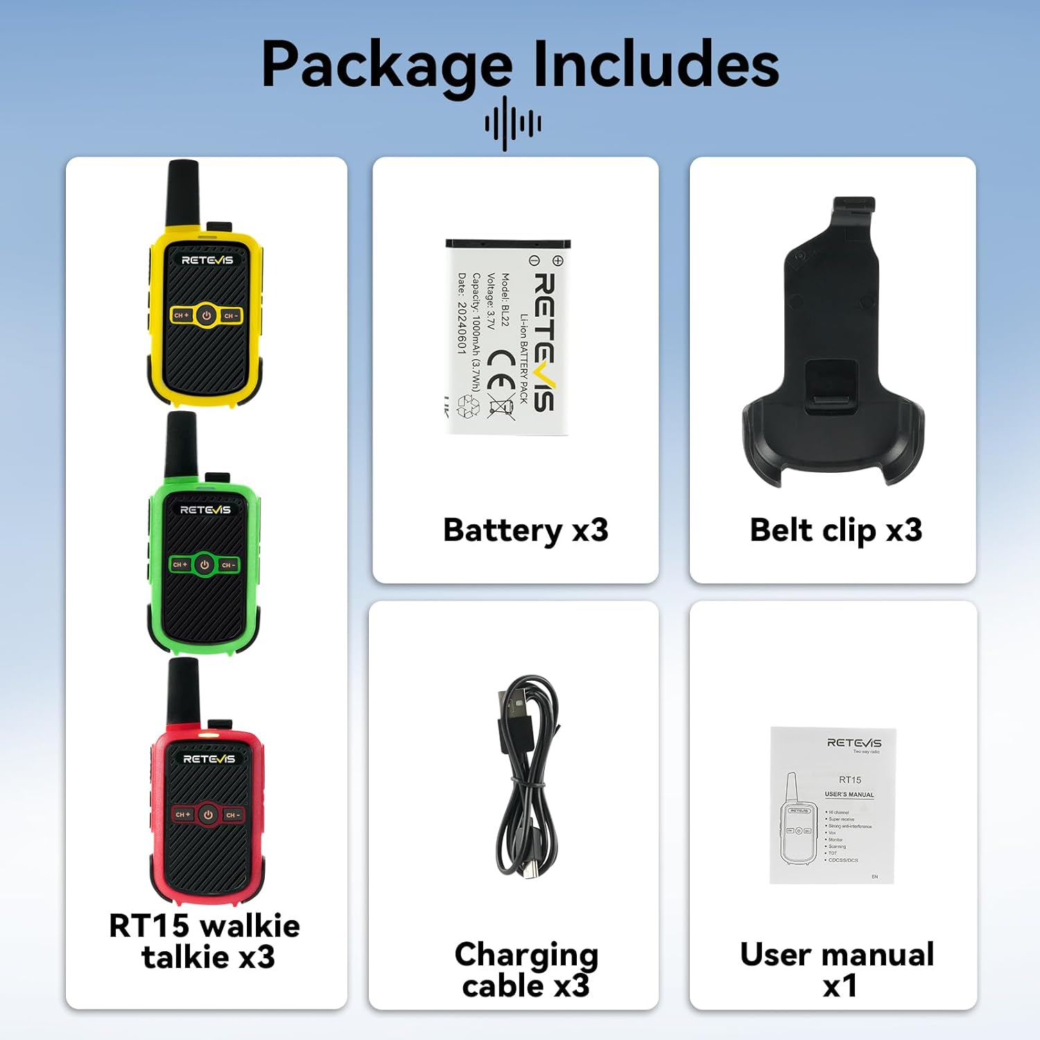 Charge your walkie talkies for kids rechargeable anytime with standard Mini USB! Compatible with power banks, car chargers & adapters. No need for special docks—convenient for outdoor, work & travel. Long battery life, rugged and durable. Power up anywhere!