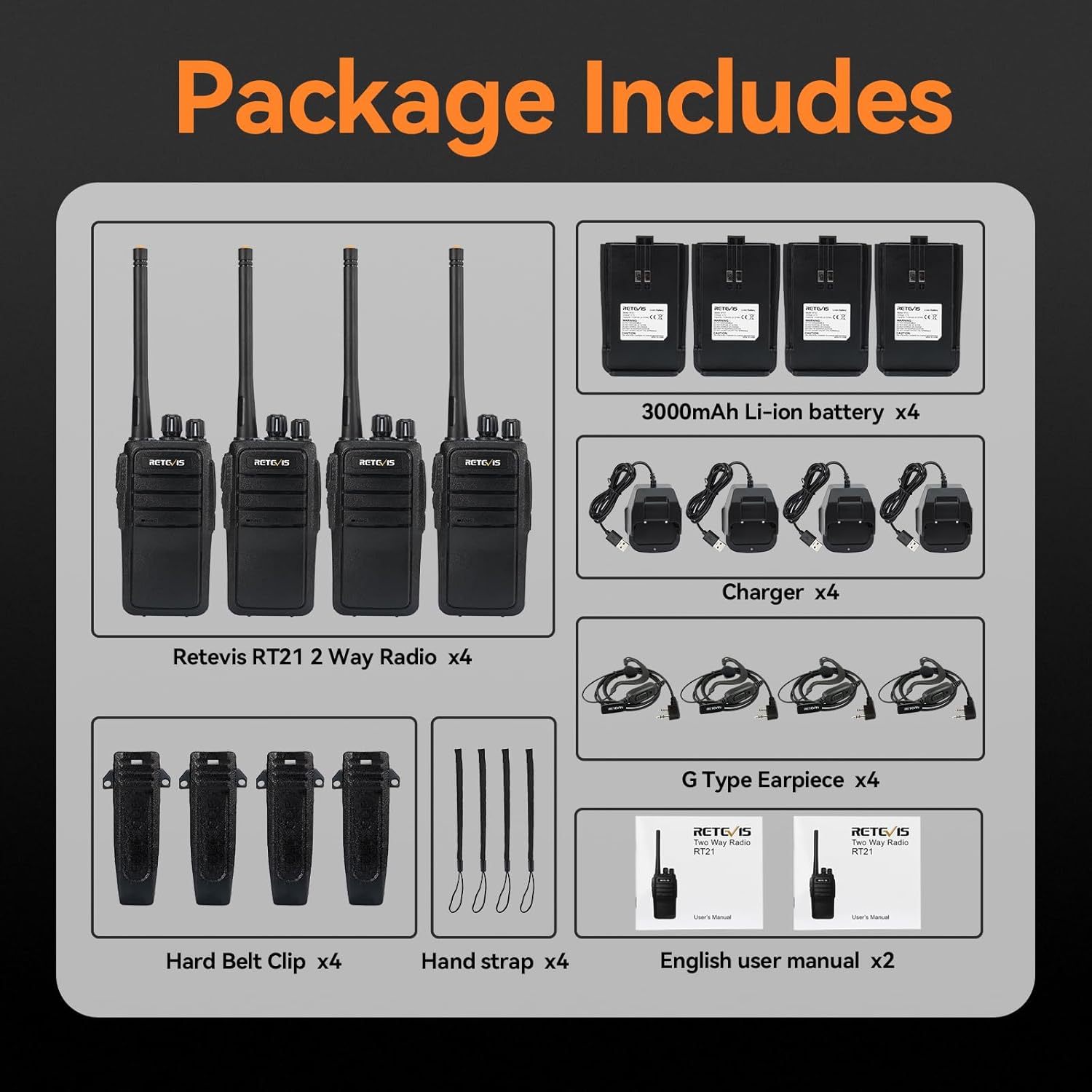 RT21 portable two way radio, each walkie talkie is equipped with a strong back clip, you can pinch it on your pocket